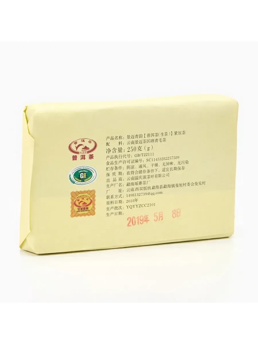 | Комплектация | Китайский выдержанный черный чай "Шен Пуэр Цзин Май Цин Юнь"; 250 г; 2019 г; Юньнань; кирпич |