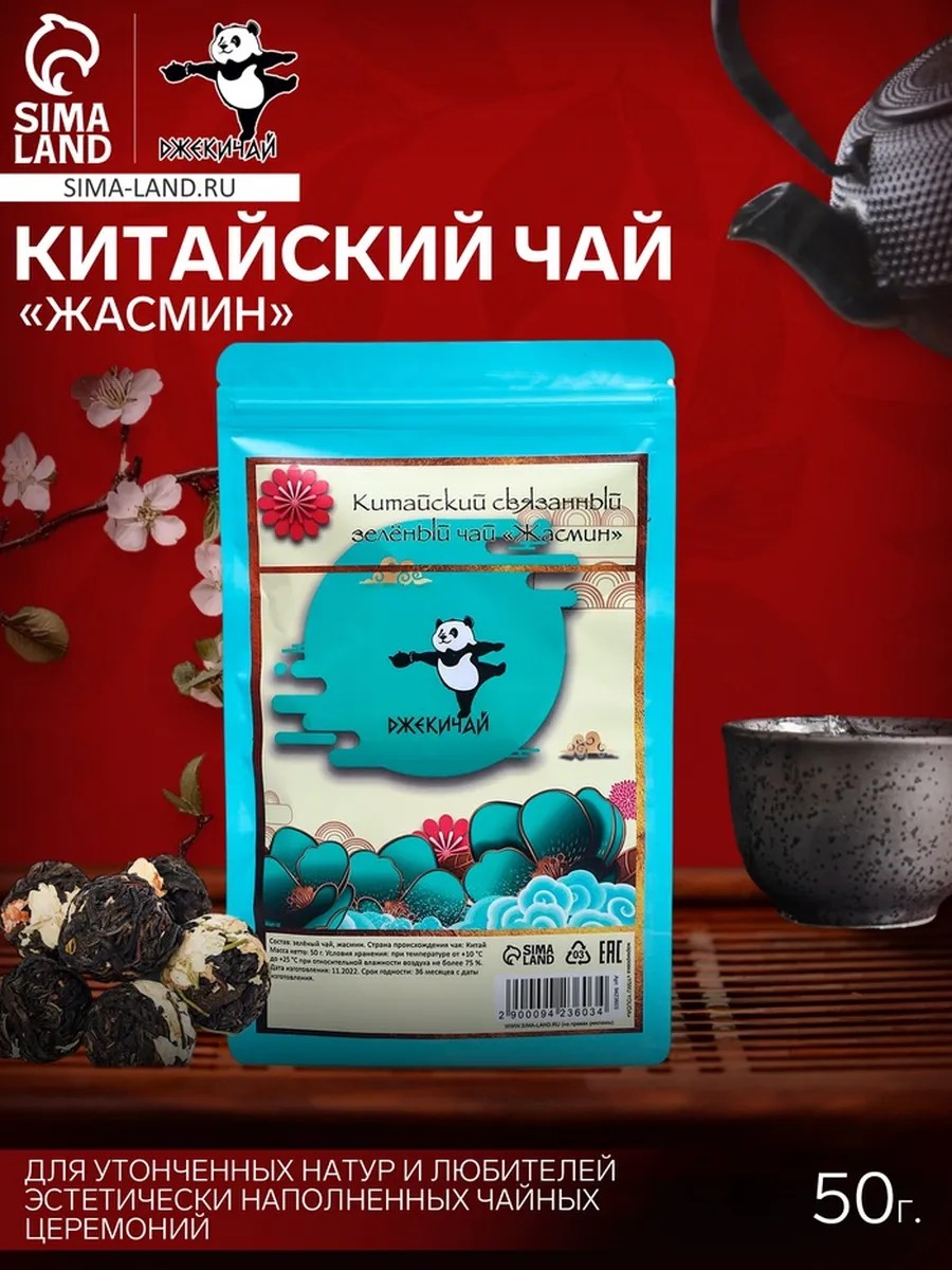 Чай зелёный китайский связанный "Жасмин", 50 г - это изысканный напиток из провинции Юньнань, который сочетает в себе молодые чайные листочки и почки. При заваривании в прозрачном чайнике происходит волшебство: шарик раскрывается, образуя эффектный цветок клевера и создавая неповторимую цветочную композицию. Вкус чая нежный и легкий, наполняющий чашку ароматом жасмина, что делает его идеальным для чайных церемоний и утонченных натур. Просто заварите чайный бутон на 400-500 мл воды при температуре 80град.C в течение 2-3 минут, одну порцию можно заваривать до трех раз. Условия хранения: хранить в плотно закрытой упаковке в прохладном и темном месте, защищая от влаги и посторонних запахов. Вес нетто: 50 г, вид чая: зелёный, упаковка: в пакете, страна производства: Китай.