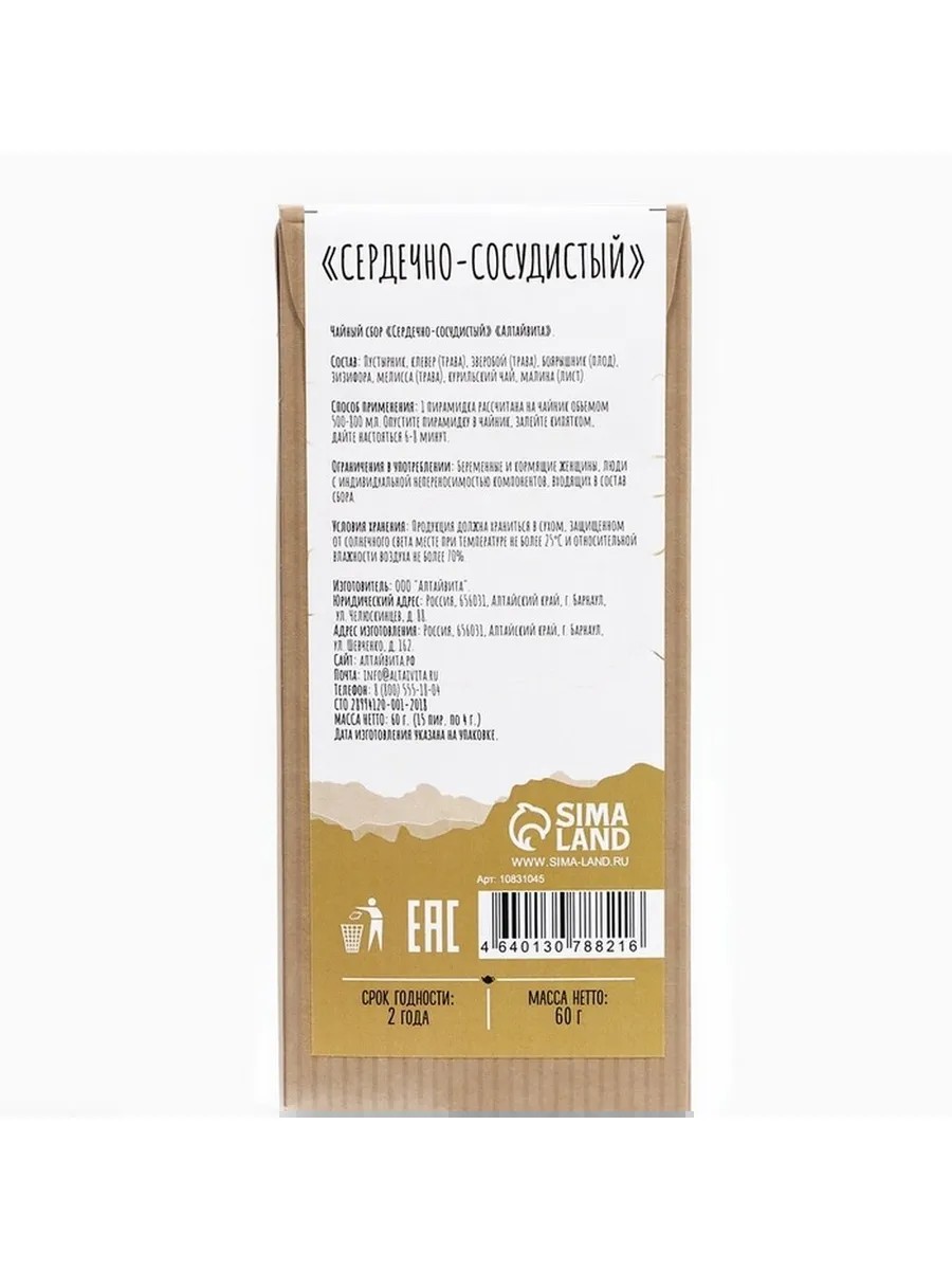 Herbal tea for cardiovascular support in convenient pyramids is a natural drink designed to strengthen the heart and blood vessels. This balanced blend of medicinal herbs helps maintain normal cardiovascular function, improving overall health. Each pyramid ensures quick and even brewing, revealing the rich aroma and healing properties of the herbs. The tea can be enjoyed hot or chilled in hot weather, making it a versatile drink for any time of year. Add a little lemon or honey for enhanced flavor and additional nutrients. Regular consumption of this tea helps strengthen the cardiovascular system, boosts immunity, and helps maintain energy and vitality. Enjoy the natural taste and take care of your health with this unique herbal blend.