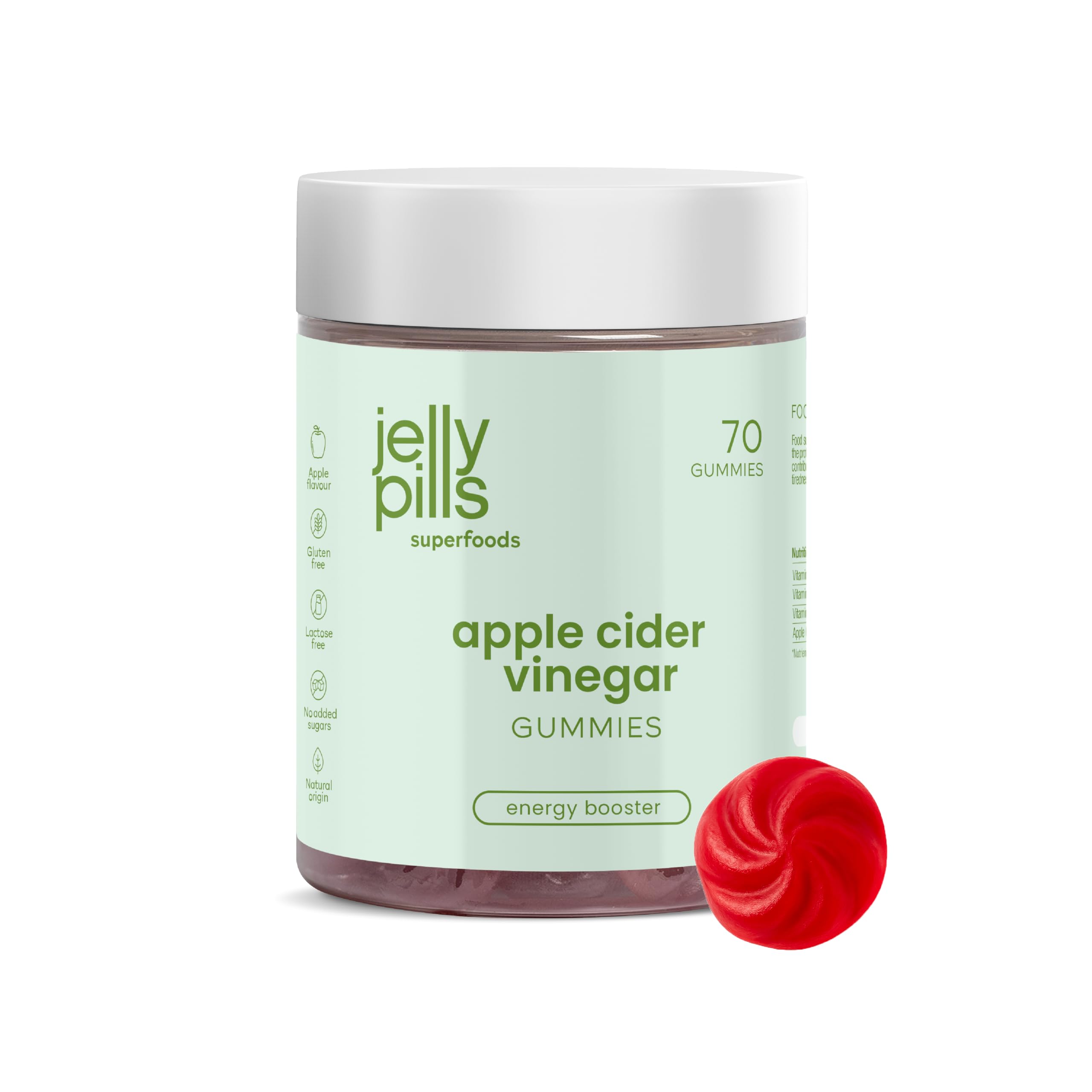 Delicious apple flavour: Daily use becomes easy and tasty thanks to the fresh, natural taste. Sugar-free 100 vegan: Ideal for a keto, low-carb or plant-based diet – without artificial additives. With chromium beetroot: Strengthens the effect of apple cider vinegar and supports blood sugar regulation. Detox fat burning: Cleanses the body from within and helps burn fat reserves more efficiently. Apple cider vinegar for digestion metabolism: Supports healthy digestion and helps activate metabolism.Jelly Pills Appelazijn Gummies 1000 mg Chroom Biet – 70 Vegan Gummies – Zonder Suiker – Natuurlijke Appelsmaak – Detox, Spijsvertering GewichtsbeheersingHeerlijke appelsmaak: Dagelijks gebruik wordt eenvoudig en smakelijk dankzij de frisse, natuurlijke smaak. Zonder suiker 100 vegan: Ideaal voor een keto-, low-carb of plantaardig dieet – zonder kunstmatige toevoegingen. Met chroom rode biet: Versterkt de werking van appelazijn en ondersteunt bloedsuikerregulatie. Detox vetverbranding: Reinigt het lichaam van binnenuit en helpt vetreserves efficiënter te verbranden. Appelazijn voor spijsvertering metabolisme: Ondersteunt een gezonde spijsvertering en helpt het metabolisme te activeren.
