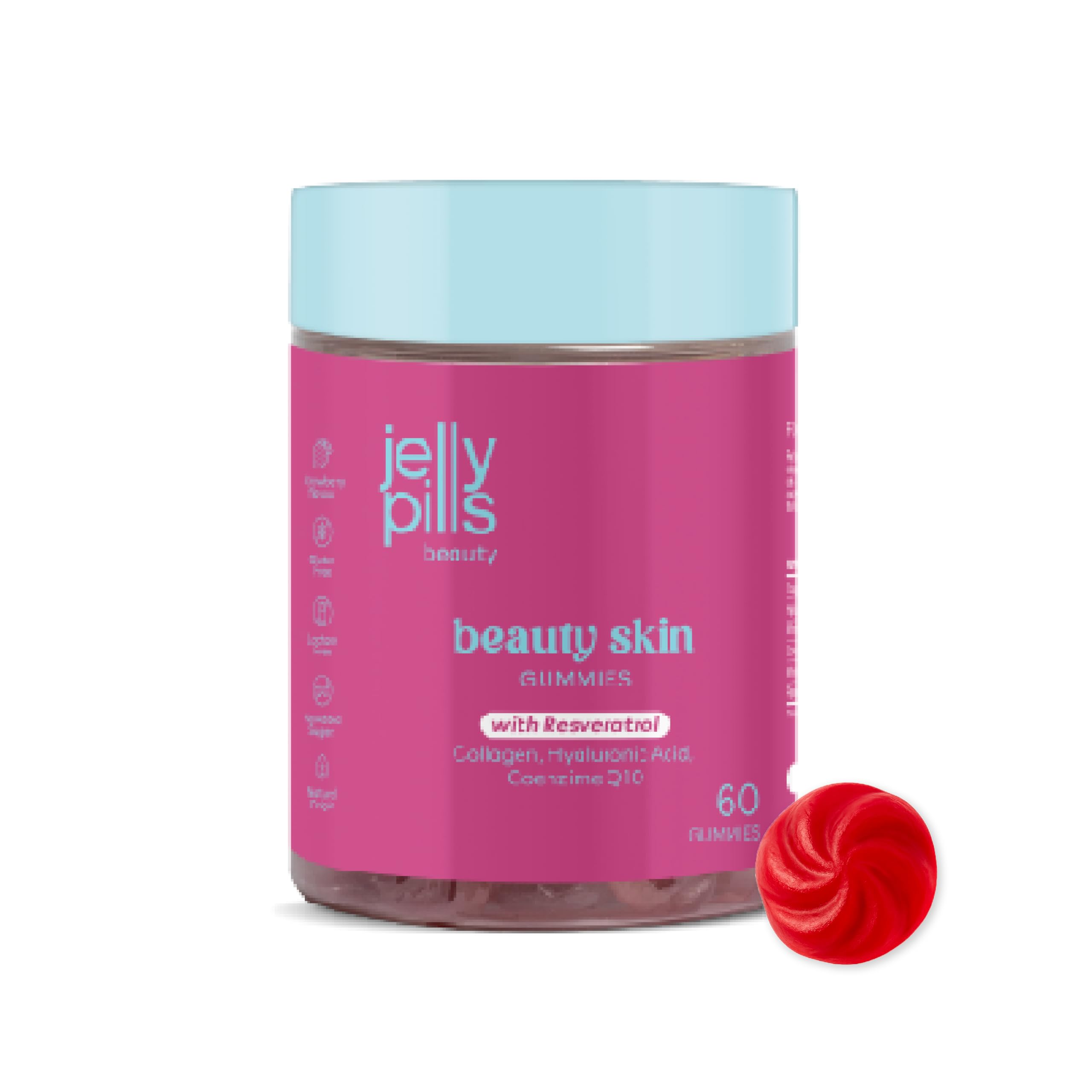 Jelly Pills Collagen 500 mg + Resveratrol Hyaluronic Acid Coenzyme Q10 & Vitamin C 60 Vegan Gummies Without Sugar Strawberry Flavor For Firm & Radiant Skin