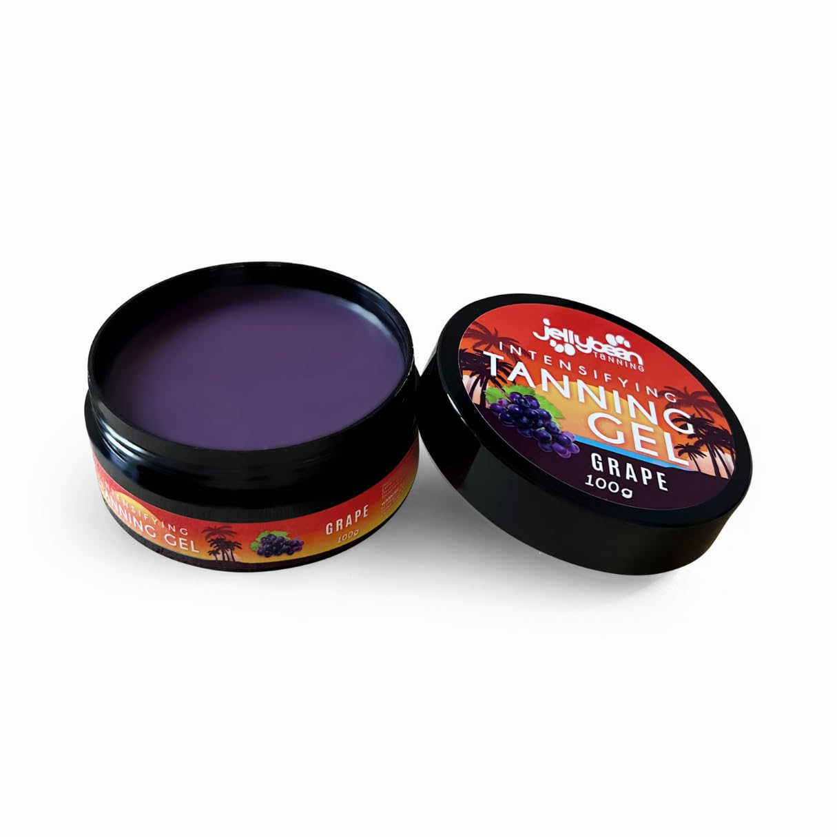 Cruelty-free and chemical-free formula - Made with 100 natural oils, including walnut oil, sesame oil and beta-carotene, Jellybean Tanning Gel promotes a darker tan without harsh chemicals or animal testing. Strengthens all skin types: Our moisturizing formula is suitable for all skin tones, stimulates the natural tanning process, leaving your skin soft and beautifully bronzed. Perfect for use in the sun and outdoors - Whether you tan indoors or outdoors, this gel speeds up the tanning process, making it the perfect sunscreen and outdoor tanning accelerator for a flawless, long-lasting bronze. Enriched with natural ingredients: Infused with cocoa butter, coconut oil, carrot seed oil and vitamin E, this premium tanning lotion provides intense moisture, leaving your skin glowing while giving you a rich, golden tan. Fast-acting tanning accelerator - Jellybean Tanning Intensifying Gel 100 g is ideal for sunbeds or outdoor sunbathing. Achieve a deeper, natural tan with less exposure to UV rays, while keeping the skin hydrated and nourished.Jellybean Tanning Intensiverende gel 100 g, druivengeur - zonnebank en outdoor bruiningsversneller met cacaoboter, kokosolie en vitamine E - bereik een diepe natuurlijke bruine kleur met natuurlijkeWreedvrije en chemisch-vrije formule - Gemaakt met 100 natuurlijke oliën, waaronder walnootolie, sesamolie en bètacaroteen, Jellybean Tanning Gel bevordert een donkerdere kleur zonder agressieve chemicaliën of dierproeven. Versterkt alle huidtypen: onze hydraterende formule is geschikt voor alle huidtinten, stimuleert het natuurlijke bruiningsproces, waardoor je huid zacht en mooi gebronsd wordt. Perfect voor gebruik in de zon en buitenshuis - Of je nu binnen of buiten bruint, deze gel versnelt het bruiningsproces, waardoor het de perfecte zonnebedcrème en een buitenbruiningsversneller is voor een onberispelijk, langdurig brons. Verrijkt met natuurlijke ingrediënten: doordrenkt met cacaoboter, kokosolie, wortelzaadolie en vitamine E, zorgt deze premium bruiningslotion voor intens vocht, waardoor je huid gloeit terwijl je een rijke, gouden kleur krijgt. Snelwerkende bruiningsversneller - Jellybean Tanning Intensifying Gel 100 g is ideaal voor ligbedden of zonnebaden buiten. Bereik een diepere, natuurlijke bruine kleur met minder blootstelling aan UV-stralen, terwijl de huid gehydrateerd en gevoed blijft.
