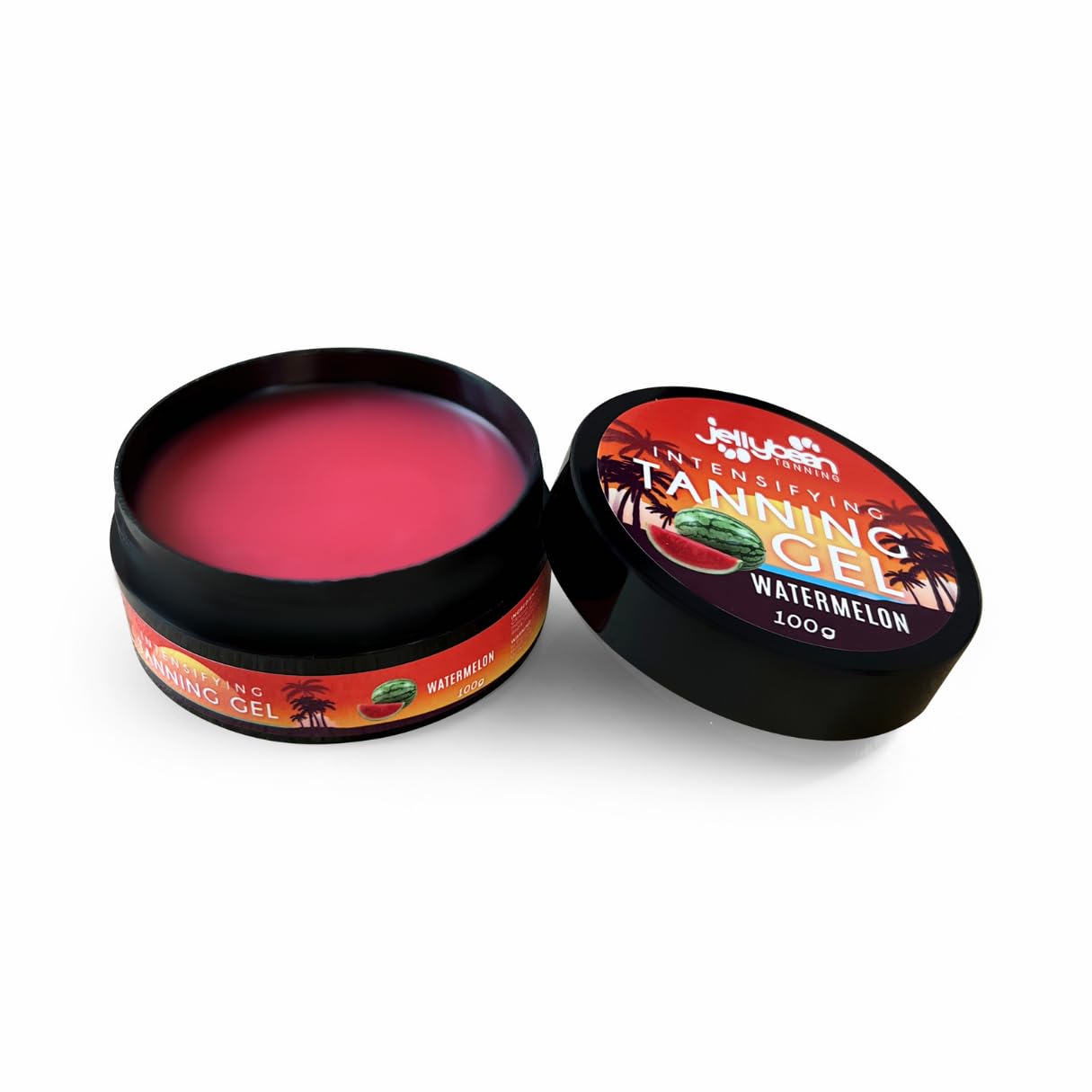 Cruelty-free and chemical-free formula - Made with 100 natural oils, including walnut oil, sesame oil and beta-carotene, Jellybean Tanning Gel promotes a darker tan without harsh chemicals or animal testing. Strengthens all skin types: Our moisturizing formula is suitable for all skin tones, stimulates the natural tanning process, leaving your skin soft and beautifully bronzed. Perfect for use in the sun and outdoors - Whether you tan indoors or outdoors, this gel speeds up the tanning process, making it the perfect sunscreen and outdoor tanning accelerator for a flawless, long-lasting bronze. Enriched with natural ingredients: Infused with cocoa butter, coconut oil, carrot seed oil and vitamin E, this premium tanning lotion provides intense moisture, leaving your skin glowing while giving you a rich, golden tan. Fast-acting tanning accelerator - Jellybean Tanning Intensifying Gel 100 g is ideal for sunbeds or outdoor sunbathing. Achieve a deeper, natural tan with less exposure to UV rays, while keeping the skin hydrated and nourished.Jellybean Tanning Intensiverende gel 100 g, watermeloengeur - zonnebank en outdoor bruiningsversneller met cacaoboter, kokosolie en vitamine E - Bereik een diepe natuurlijke bruine kleur metWreedvrije en chemisch-vrije formule - Gemaakt met 100 natuurlijke oliën, waaronder walnootolie, sesamolie en bètacaroteen, Jellybean Tanning Gel bevordert een donkerdere kleur zonder agressieve chemicaliën of dierproeven. Versterkt alle huidtypen: onze hydraterende formule is geschikt voor alle huidtinten, stimuleert het natuurlijke bruiningsproces, waardoor je huid zacht en mooi gebronsd wordt. Perfect voor gebruik in de zon en buitenshuis - Of je nu binnen of buiten bruint, deze gel versnelt het bruiningsproces, waardoor het de perfecte zonnebedcrème en buitenbruiningsversneller is voor een onberispelijk, langdurig brons. Verrijkt met natuurlijke ingrediënten: doordrenkt met cacaoboter, kokosolie, wortelzaadolie en vitamine E, zorgt deze premium bruiningslotion voor intens vocht, waardoor je huid gloeit terwijl je een rijke, gouden kleur krijgt. Snelwerkende bruiningsversneller - Jellybean Tanning Intensifying Gel 100 g is ideaal voor ligbedden of zonnebaden buiten. Bereik een diepere, natuurlijke bruine kleur met minder blootstelling aan UV-stralen, terwijl de huid gehydrateerd en gevoed blijft.
