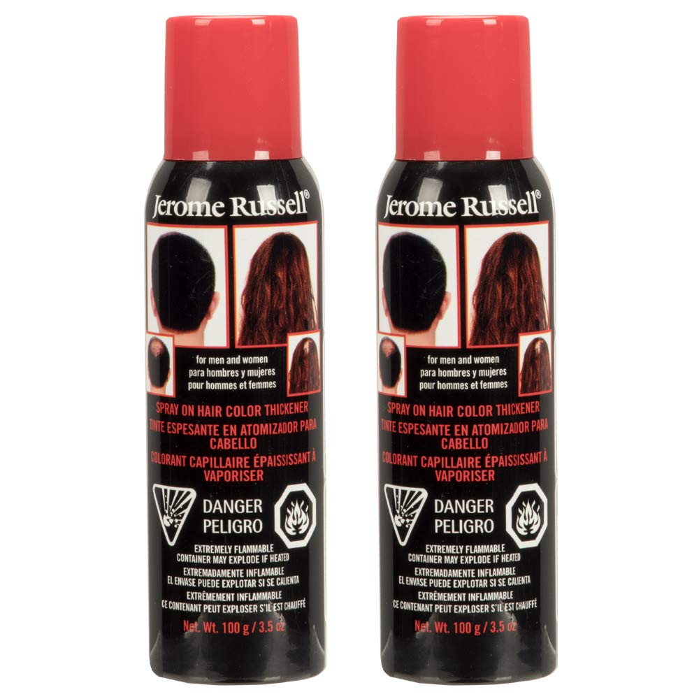 Trusted for Generations: Jerome Russell is a world leader in the hair color industry with over 30 years of experience. It continues to offer great value products using the highest premium quality ingredients. A go-to for color solutions. 2 Pack On-The-Go Instant Hair Transformation: Come in 2 packs of 3.5 oz size making it perfect for travel. Simply spray on your thinning crowns and sparse areas, blend-in, and brush your hair to get an instantly thicker, fuller look anytime, anywhere!. Non-Damaging & Easy to Washout: No need for the use of tints, bleaches, or peroxide. This is non-irritating to the scalp and can be washed quickly with shampoo! Acid dye-free, paraben-free, and 100% cruelty-free, so it is safe even on color-treated hair. Works With All Hair Types & Textures: From straight to curly hairs, this works well and can last all day! It perfectly blends up to hair roots for total coverage, giving the illusion of having fuller hair. Multipurpose Hair Thickener Spray: Jerome Russell Spray-On Color Dark Brown Hair Thickener helps cover and color light to medium bald spots. Effective on fine and thinning hair, and touching-up gray between colorings. Can be used as beard filler, too!.