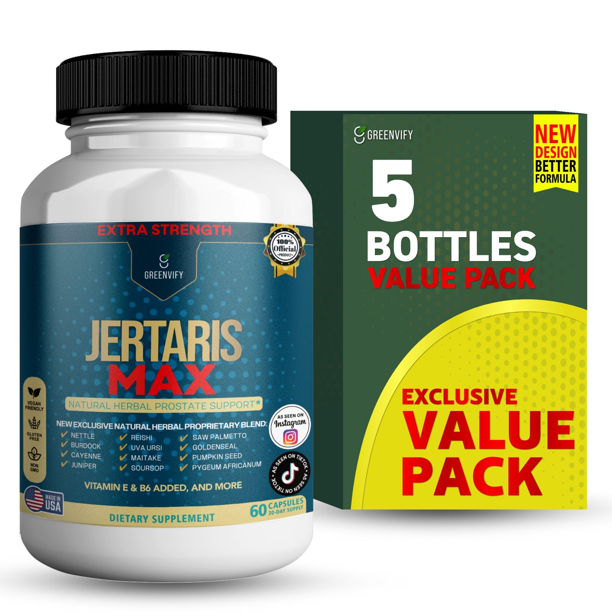 Jertaris Max Extra Strength Prostate Support Natural Herbal Supplement with Saw Palmetto Pygeum Plant Sterols 60 Capsules (5)