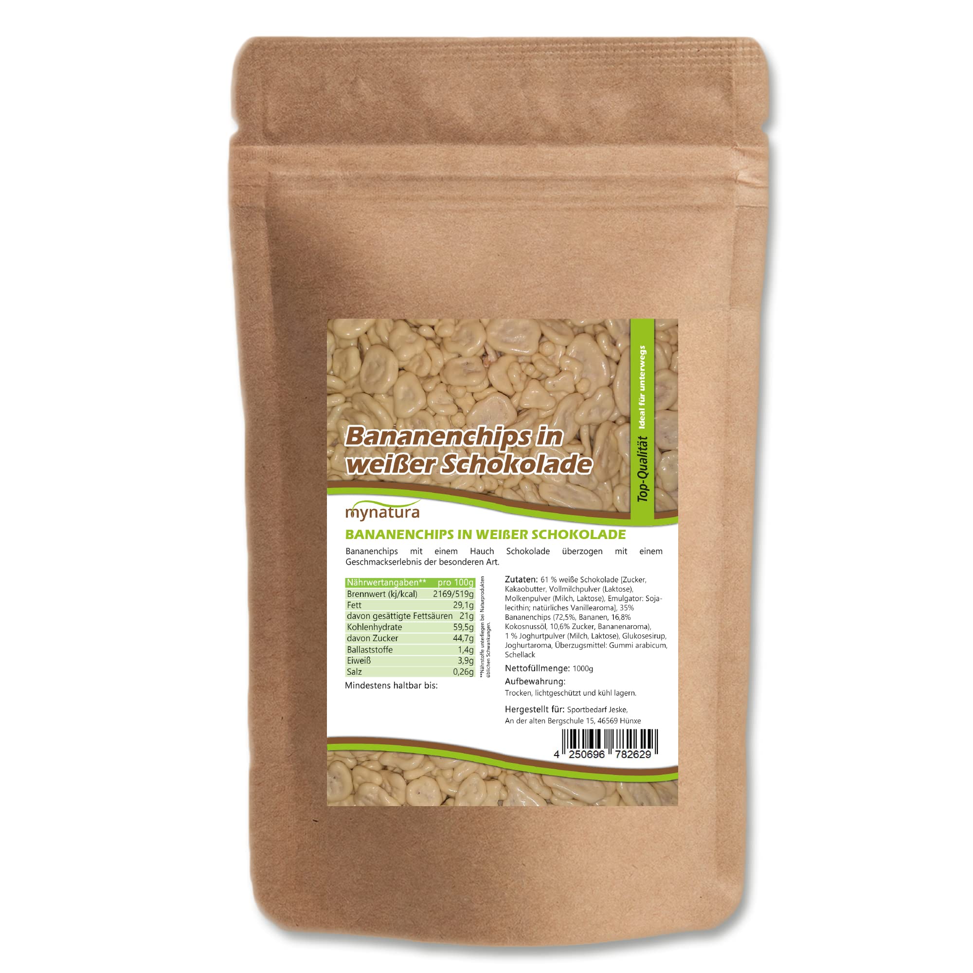 Mynatura Bananenchips, met witte chocolade omhuld I chocolade I banaan I snack I topping I snoep I in zak (2 x 1000 g)