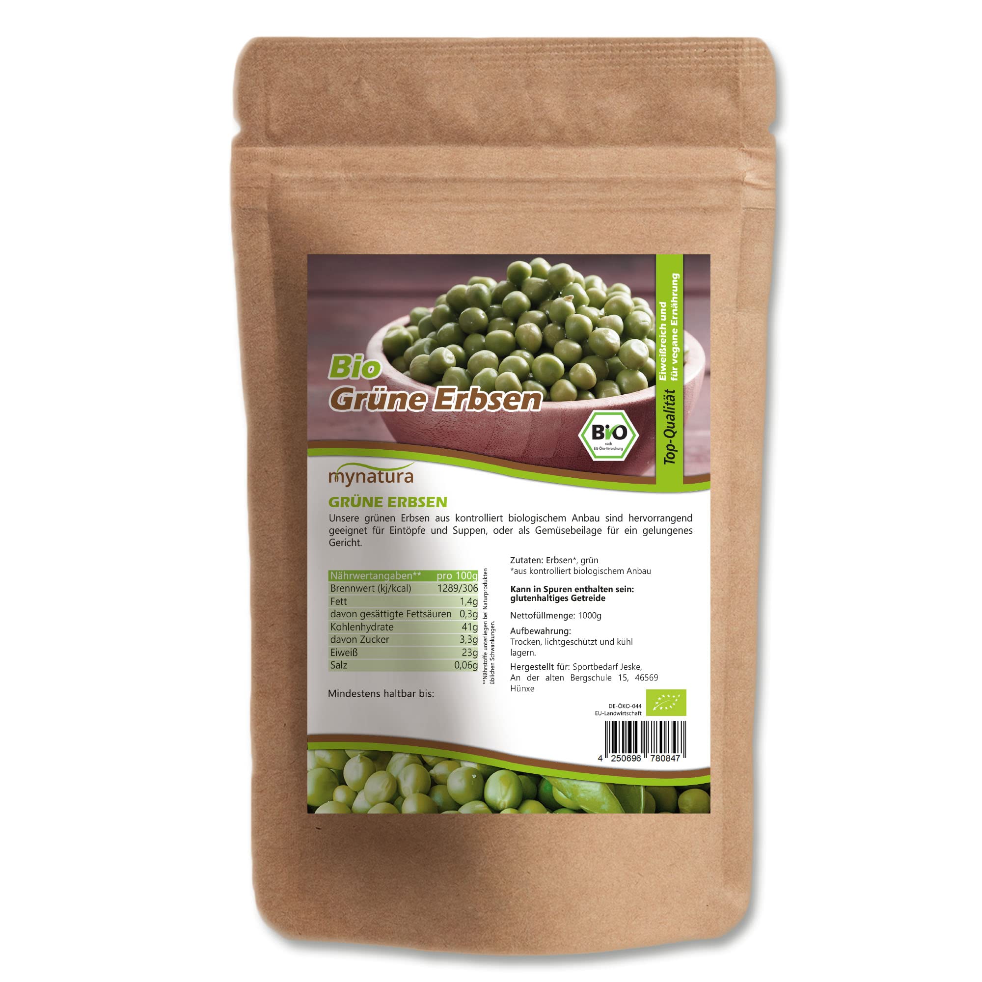 Jeske Sports Supplies Mynatura Green organic peas vegetables green peas vegan food eating peas garden peas vegetable snack side dish in bag 3000 g
