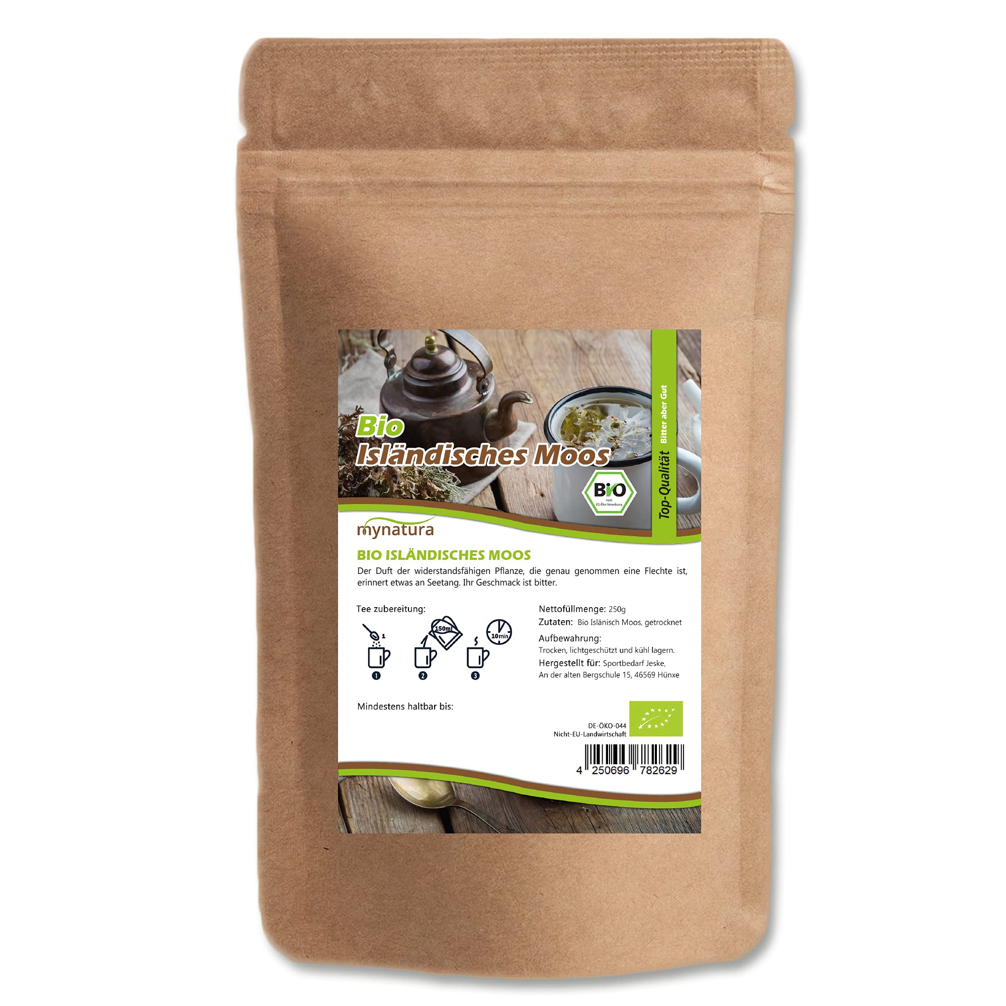 Jeske Sports Supplies Mynatura Organic dried Icelandic moss tea I Island moss I Irish Moss I Cetraria islandica I Vegan I Natural product I In bag 250g