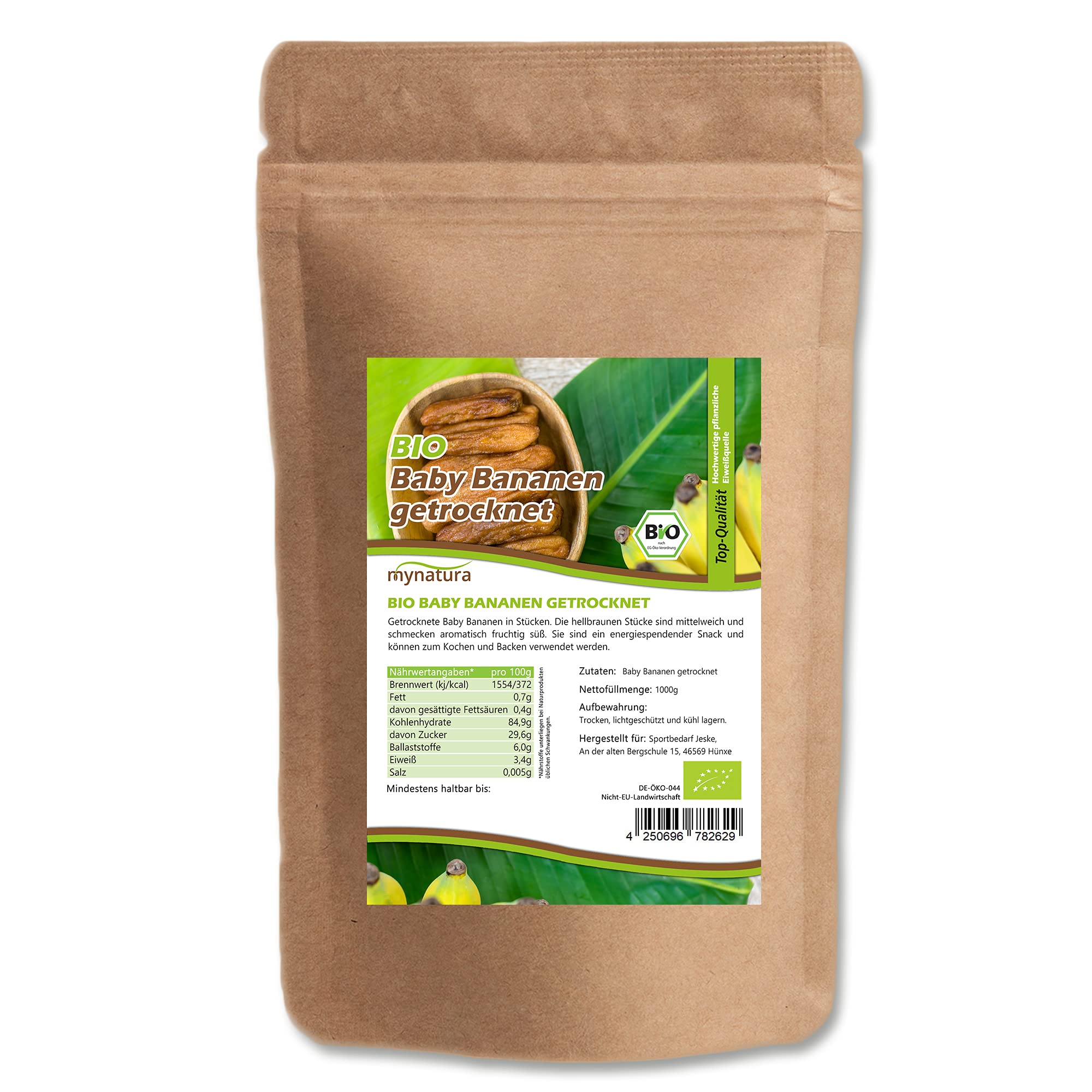 Mynatura Biologische mini-bananen gedroogd, babybananen, snack, droogvruchten, muesli, mineralen, in zak (2000 g)