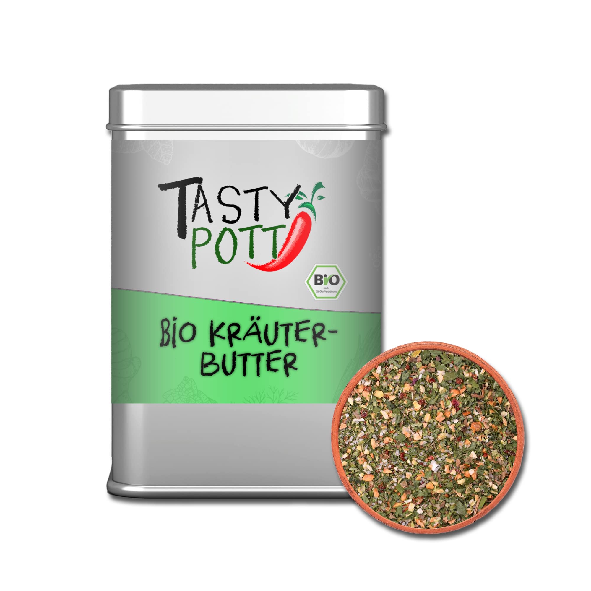 Tasty Pott Biologische kruidenmengsels, kruidenmengsels, specerijen, kruiden, groenten, mixen, kruidenstrooier (biologische kruidenbotermix 80 g)