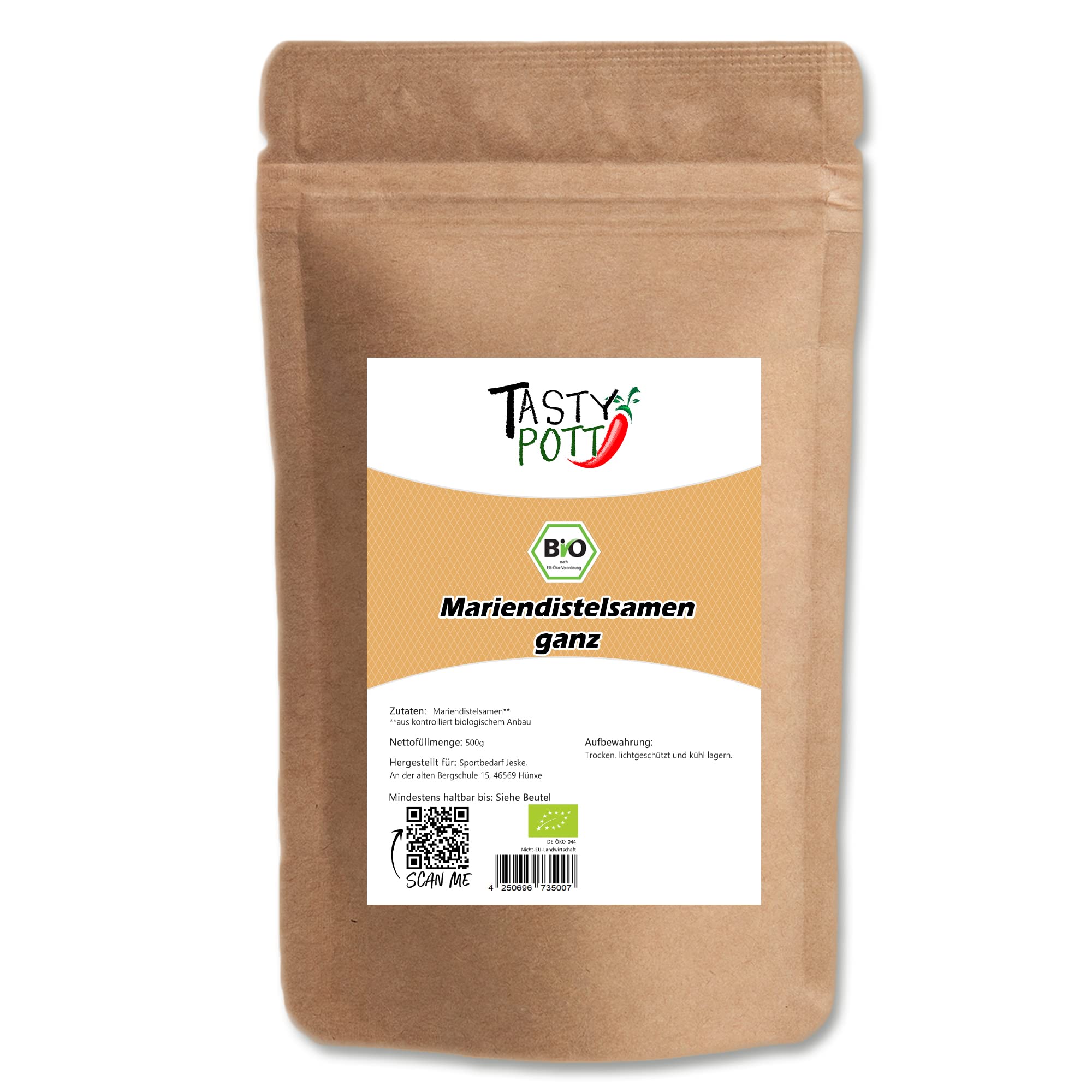 Jeske Sports Supplies Tasty Pott Organic milk thistle seeds whole I thistle seed I cooking tea I milk thistle I herbal tea I tea herbs I for infusions and tinctures I medicine I natural product I in bag I 500 g