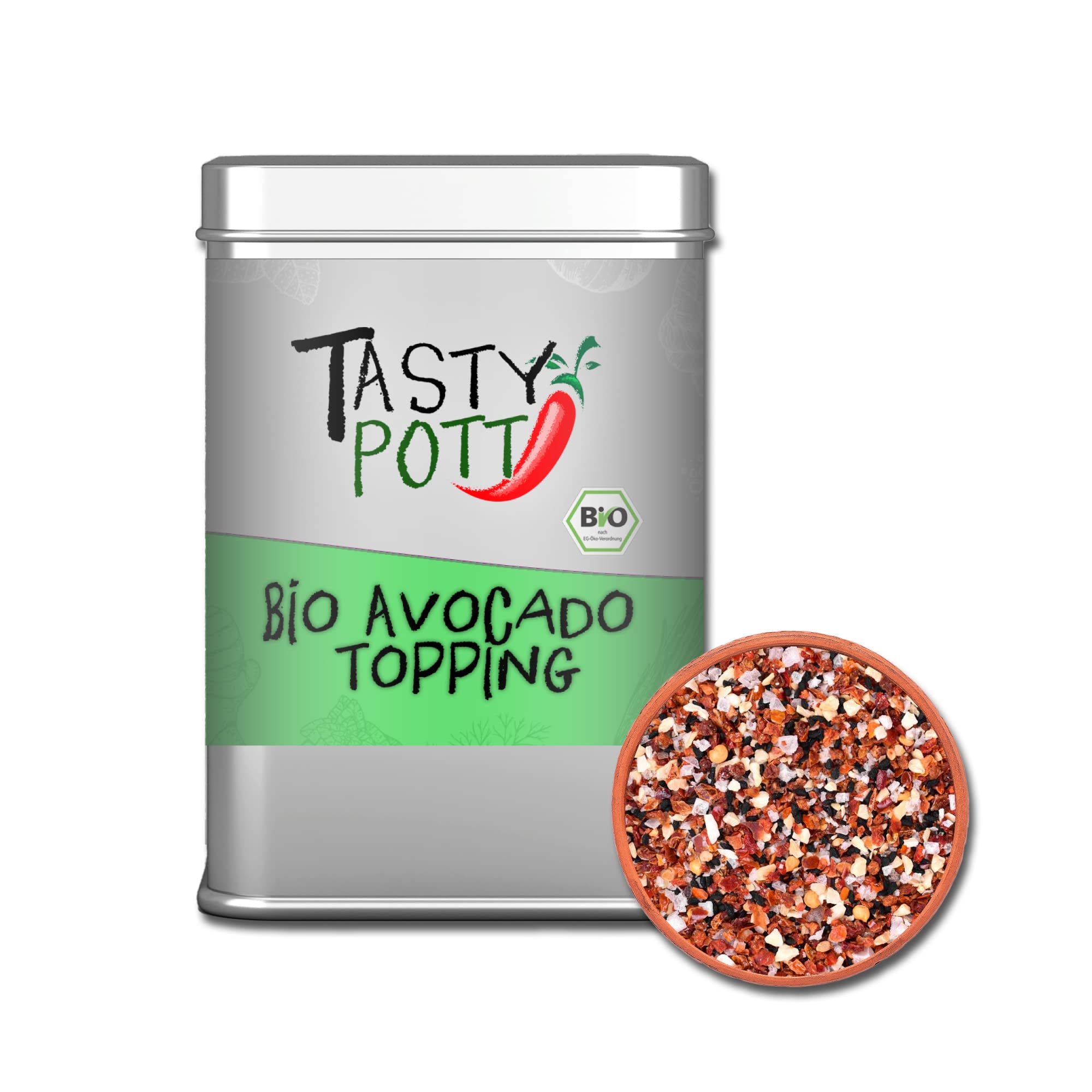Tasty Pott Biologische kruidenmengsels, kruidenmengsels, specerijen, kruiden, groenten, mixen, kruidenstrooier (Bio Avocado Topping 80 g)