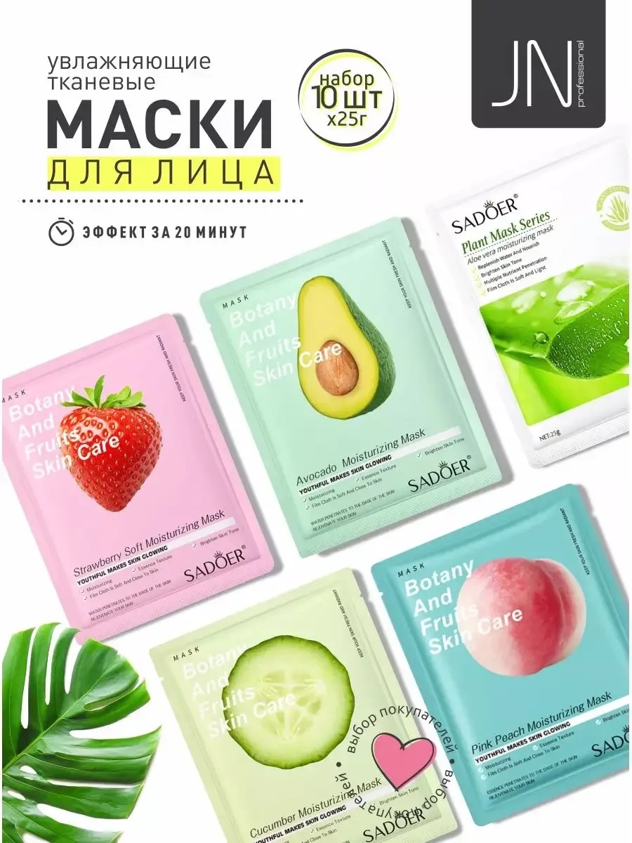 Introducing a unique set of cosmetic sheet masks from JessNail. This box contains 10 masks, each specially formulated for effective facial care. Sheet masks are more than just a cosmetic product; they're a complete skincare ritual. They're enriched with vitamins, hyaluronic acid, panthenol, collagen, retinol, niacinamide, and other beneficial ingredients that will help your skin look healthy, hydrated, and radiant. These masks will help relieve dryness, protect against toxins, improve elasticity, and reduce signs of fatigue and stress. This set of sheet masks is the perfect solution for your daily express skincare routine. Fruit, berry, and vegetable masks penetrate deep into the skin, eliminate inflammation, improve complexion, help reduce wrinkles, and leave your skin feeling hydrated and fresh. They also tone the skin, provide antioxidant benefits, remove dead skin cells, leave it matte, velvety, and nourished, and enrich skin cells with oxygen. This mask set is suitable for both women and teenagers, helping combat acne, aging skin, and other concerns. The instructions for use are simple and convenient: open the packet, unfold the mask, and apply it to cleansed skin, gently smoothing it into a tight seal. Leave on for 15-20 minutes, then remove. We recommend using the mask set daily for 10-14 days, and then 1-2 times a week for a maintenance effect. After using the mask, you can use the remaining serum to moisturize your décolleté, neck, and hands. Don't miss the opportunity to treat yourself or your loved ones with such a wonderful gift. This mask set makes a great gift for a birthday, New Year, or any other special occasion. Give the gift of care and beauty to your loved ones with this amazing set of sheet face masks.