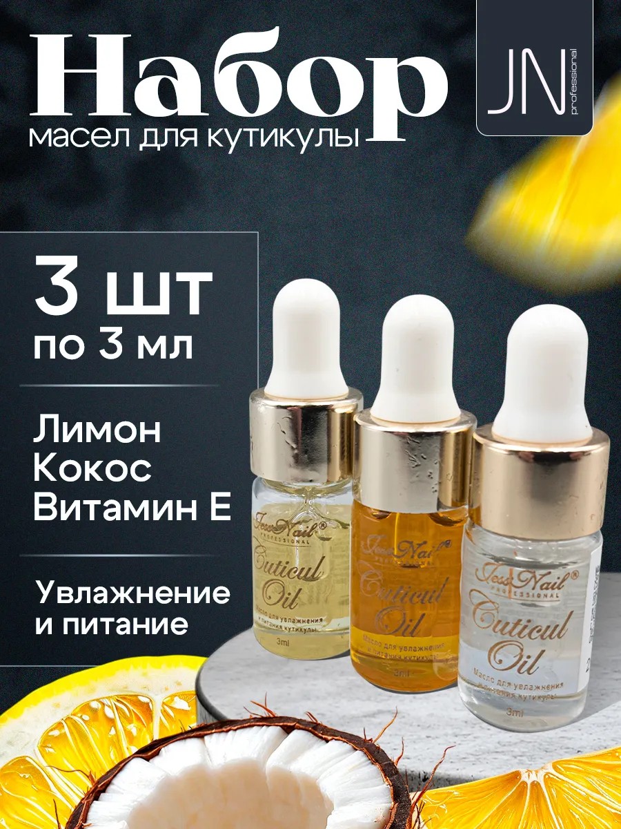Масло для кутикулы от JessNail 3 шт по 3 мл лимон, кокос, витамин Е - это ваш идеальный помощник в уходе за кожей, представлен в удобной бутылочке с восхитительным ароматом, который подарит вам ощущение свежести и уюта при каждом использовании. Средство не оставляет жирности и моментально впитывается, придает ухоженный вид вашим рукам. Масло глубоко питает, избавляет от сухости и шелушений, помогает заживлять мелкие повреждения кожи, восстанавливает обезвоженную кутикулу, предотвращает появление заусенец и ломкости, смягчает и снимает воспаление. Благодаря активным компонентам способствует укреплению ногтевой пластины. Пипетка позволяет точно дозировать продукт, избегая излишнего расхода. Приятный запах дарит создает атмосферу релаксации. Станет незаменимым помощником как для профессиональных мастеров маникюра, так и для тех, кто предпочитает ухаживать за собой дома. Трэвел форма позволяет брать его с собой, не занимает много места, поместиться в любой сумочке.