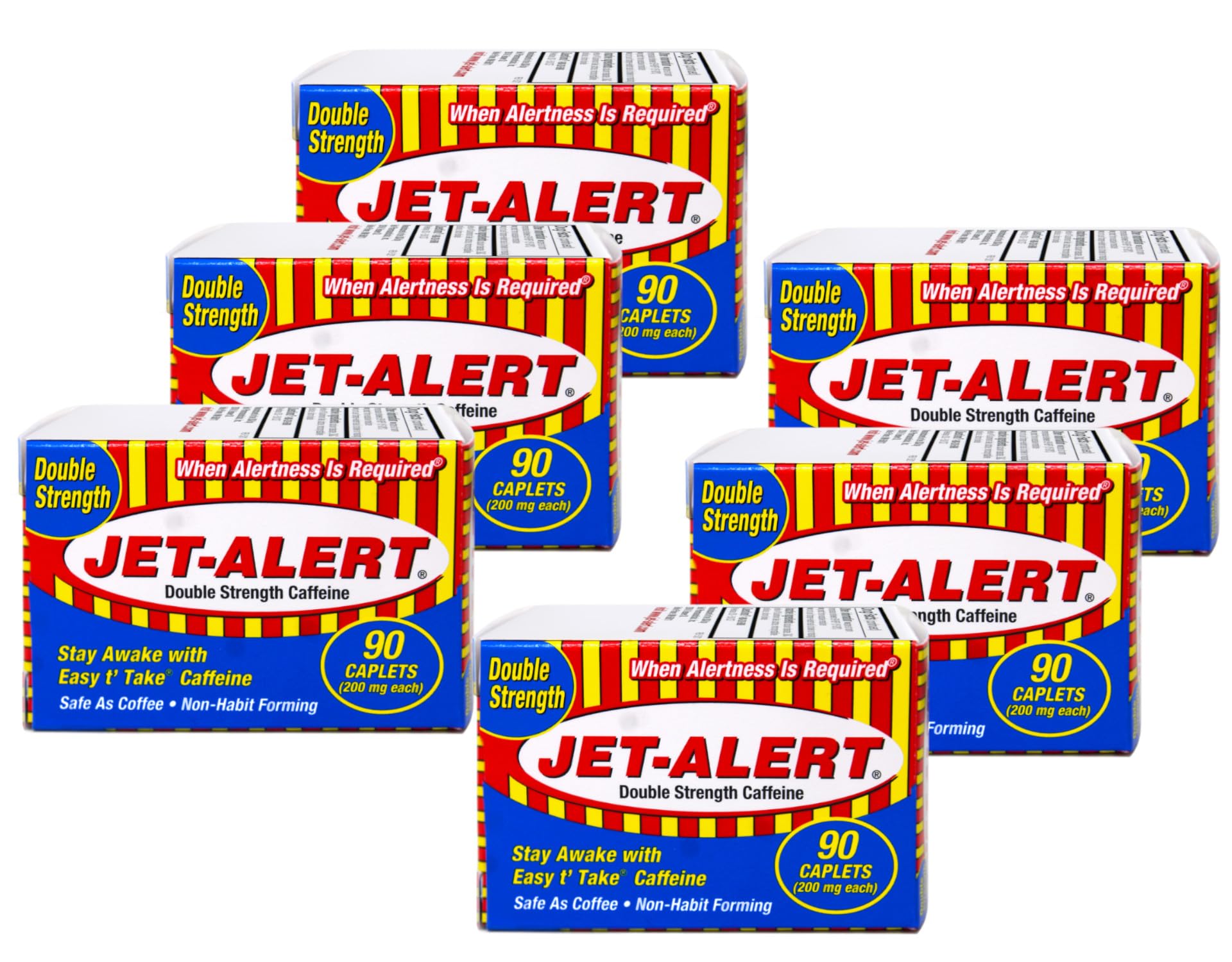 Jet Alert Double Strength Alertness Aid Caplets 200mg-90 Ct Value Packs (6)