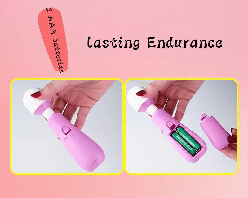 Personal Massager with Strong Vibration.Speed: 2 Speed Levels Medium StrongBody Material: Silicone ABSBattery: Works with 2 Small Pen BatteriesWaterproof: Ipx-4Feature: VibrasionSize: 3.5x15cmVoltage: 3V(2 batteries)Weight:70gMedical ABS, movable head, elasticThe silicone gel coating on the tip gives a smooth feeling.The headset can play 360 degrees.It works silentlyEasy to clean