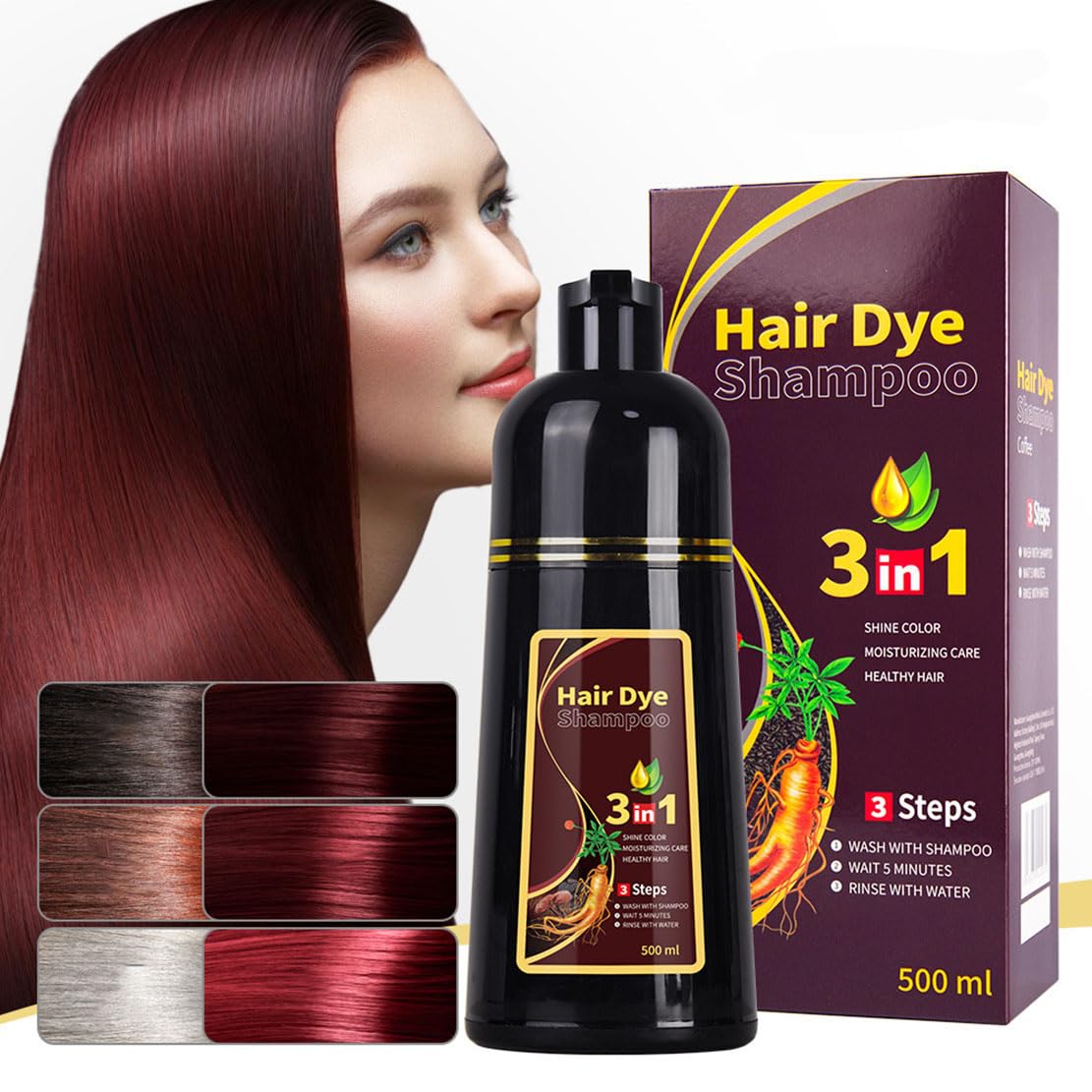 Product Introduction: 3-in-1 Black Ink Coloring Shampoo Transform your hair coloring routine with this 3-in-1 black ink coloring shampoo – a convenient, nourishing, and effective solution for achieving glossy dark hair and covering gray hair in just a few steps! Key Features: 3-in-1 Action: Combines coloring, hydration, and conditioning. Gives hair an intense color (black, dark brown, deep wine red, etc.), while making it softer, shinier, and healthier. Nourishing Natural Ingredients: Formulated with extracts of ginseng, polygoni multiflori, ganoderma lucidum, and soapwort – traditional ingredients that nourish and protect the hair fiber during coloring. Simple 4-Step Application: Put on gloves, apply the shampoo to dry hair, leave on for 15-20 minutes, then rinse thoroughly with clean water. Ideal for hassle-free at-home hair coloring. Perfect Gray Coverage: Designed to effectively conceal gray hair and maintain even, long-lasting color. Available in several fashionable shades (coffee, wine red, chestnut brown, purple). Precise Dosage: Precise amount according to hair length (short hair for men: 3 pumps, short hair for women: 5 pumps, medium to long hair: 7 pumps) for optimal and economical use. Whether you want to refresh your look with a deep black or try a trendy shade, this color shampoo combines simplicity, care, and professional results. Enjoy effortless coloring and nourished hair! INGREDIENTS 1 SAFETY WARNING For external use only. Avoid contact with eyes. Keep away from flames and heat sources. See morePrecise Dosage Adapted to Every Hair Length : 3 pumps for short men's hair, 5 pumps for short women's hair, and 7 pumps for medium to long hair, ensuring optimal and economical use. Perfect Gray Hair Coverage and Long-Lasting Color : Designed to effectively and evenly conceal gray hair, it guarantees vibrant and long-lasting color. Several fashionable shades (coffee, wine red, chestnut brown, purple) are available to suit your style. Simplified 4-Step Application : Put on gloves, apply the shampoo to dry hair like a regular hair care product, leave it on for 15 to 20 minutes depending on hair length, then rinse thoroughly with clean water – an intuitive process for professional results at home. Nourishing and Conditioning Natural Ingredients : Formulated with extracts of ginseng, polygoni multiflori, ganoderma lucidum, and soapwort, it deeply nourishes hair during coloring, preserving its health and elasticity. Complete 3-in-1 Action : This product combines hair coloring, hydration, and conditioning in a single formula. It provides intense and long-lasting color (available in black, dark brown, deep wine red, etc.), while enhancing the shine and softness of the hair fibers.Shampooing Colorant Naturel 3 en 1,Teinture Cheveux avec Extraits de Ginseng, Ganoderma,Multiple Teintes Disponibles, Pour Cheveux Courts et Longs,500ML (Deep wine red)DESCRIPTION DU PRODUIT DESCRIPTION DU PRODUIT Présentation du Produit: Shampoing Colorant à l'Encre Noire 3 en 1 Transformez votre routine de coloration des cheveux avec ce shampoing colorant à l'encre noire 3 en 1 – une solution pratique, nourrissante et efficace pour obtenir des cheveux foncés brillants et couvrir les cheveux gris en quelques étapes ! Caractéristiques Clés: Action 3 en 1: Combine la coloration, l'hydratation et la revitalisation. Donne aux cheveux une couleur intense (noir, brun foncé, rouge vin profond, etc.), tout en les rendant plus doux, brillants et sains. Ingrédients Naturels Nourrissants : Formulé avec des extraits de ginseng, de polygoni multiflori, de ganoderme lucidum et de savonnette – des ingrédients traditionnels qui nourrissent et protègent la fibre capillaire pendant la coloration. Application Simple en 4 Étapes : Mettez des gants, appliquez le shampoing sur des cheveux secs, laissez agir 15-20 minutes, puis rincez à l'eau claire. Idéal pour une coloration à domicile sans complication. Couverture Parfaite des Cheveux Gris : Conçu pour masquer efficacement les cheveux gris et maintenir une couleur uniforme et durable. Disponible en plusieurs teintes de mode (café, rouge vin, marron châtaigne, pourpre). Dosage Adapté : Quantité precise selon la longueur des cheveux (cheveux courts homme: 3 pressions, cheveux courts femme: 5 pressions, cheveux mi-longs à longs: 7 pressions) pour une utilisation optimale et économe. Que vous souhaitiez rajeunir votre look avec un noir profond ou vous lancer dans une teinte de mode, ce shampoing colorant allie simplicité, soin et résultat professionnel. Profitez d'une coloration sans effort et des cheveux nourris ! INGRÉDIENTS 1 AVERTISSEMENT DE SÉCURITÉ Usage externe uniquement. Eviter tout contact avec les yeux. Tenir éloigné de toute flamme ou source de chaleur. Voir plusDosage Précis Adapté à Chaque Longueur de Cheveux : 3 pressions pour les cheveux courts masculins, 5 pressions pour les cheveux courts féminins et 7 pressions pour les cheveux mi-longs à longs, assurant une utilisation optimale et économe. Couverture Parfaite des Cheveux Gris et Tenue de Couleur Durable : Conçu pour masquer efficacement les cheveux gris de manière homogène, il garantit une couleur vive et persistante. Plusieurs teintes de mode (café, rouge vin, marron châtaigne, pourpre) sont proposées pour adapter votre style. Application Simplifiée en 4 Étapes sans Complexité : Mettez des gants, appliquez le shampoing sur des cheveux secs comme un produit de soin ordinaire, laissez agir 15 à 20 minutes selon la longueur des cheveux, puis rincez abondamment à l'eau claire – un processus intuitif pour des résultats professionnels à domicile. Ingrédients Naturels Nourrissants et Soignants : Formulé avec des extraits de ginseng, de polygoni multiflori, de ganoderme lucidum et de savonnette, il nourrit profondément les cheveux pendant la coloration, préservant leur santé et leur élasticité. Action 3 en 1 Complète : Ce produit allie la coloration, l'h