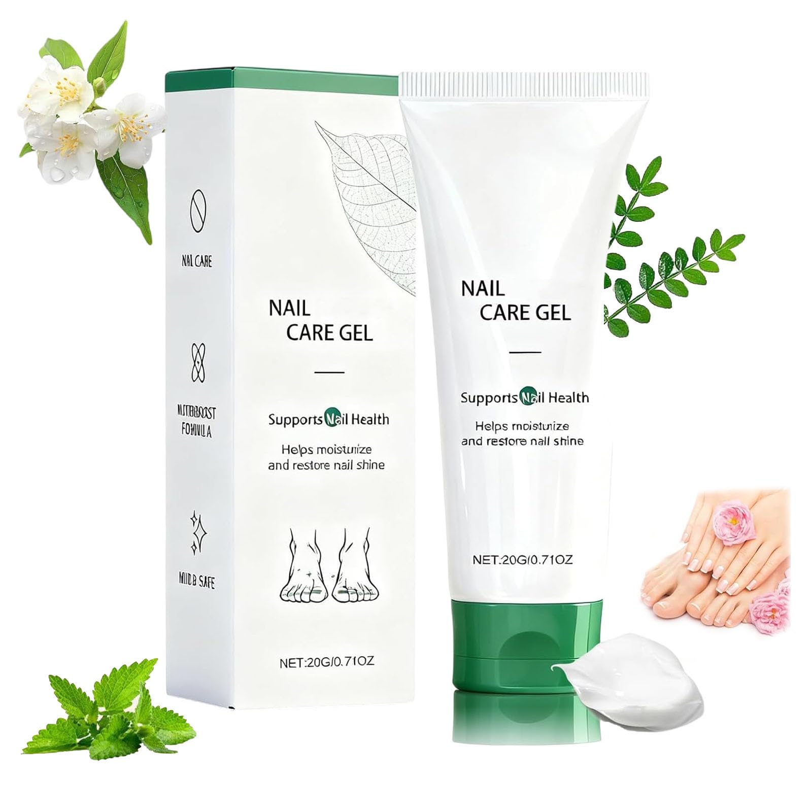 Natural nail care gel for stronger, healthier nails Specifications: Name: Nail Care Gel Net Contents: 20g Shelf Life: 3 years Package Contents: 1 or 2 tubes of nail care gel Note: 1. Please allow 1-5g 1-2cm difference due to manual measurement. 2. The actual product color may differ slightly from the image shown due to variations in display and lighting. Thank you for your understanding. SAFETY WARNING Store in a cool, dry place away from light. Keep out of reach of children.