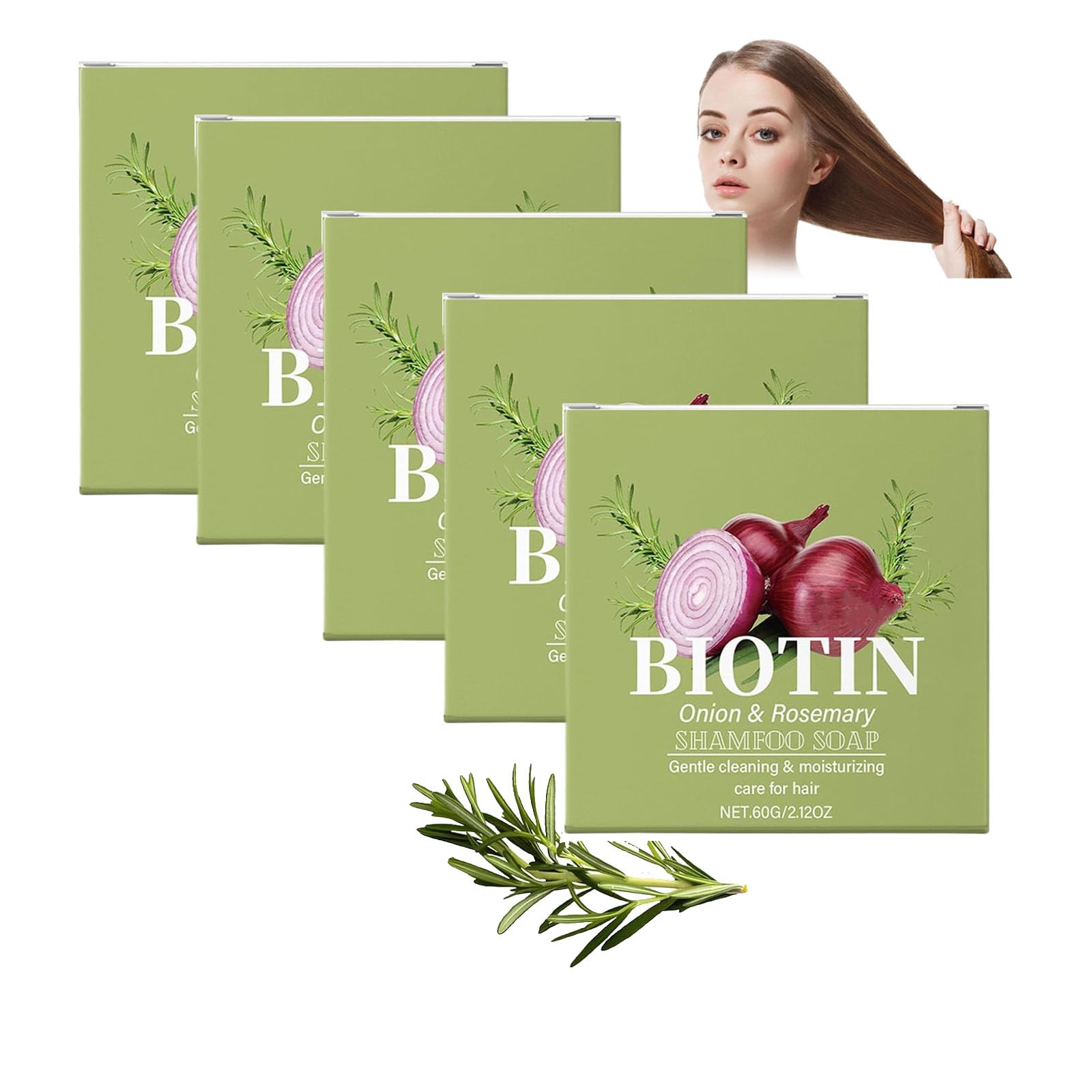 : Biotin and Onion Shampoo Bars, Rosemary Shampoo Bar, Onion and Rosemary Hair Soap, Deep Cleansing Soap, 60g Onion and Rosemary Shampoo Bar, Onion and Rosemary Hair Shampoo Bar, Solid Shampoo, Moisturizing Onion and Rosemary Soap for Hair Growth. Solid Onion. - Deep cleansing rosemary shampoo with onion extract, onion shampoo bar for hair growth, onion and rosemary soap. Specifications: Item Name: Onion and Rosemary Shampoo Bar Net Contents: 60g Shelf Life: 3 years Package contents: 1 2 3 5 onion and rosemary shampoo bars SAFETY WARNING Store in a cool, dry place away from sunlight. Keep out of reach of children.Easy to carry: Our shampoo bar is designed in a travel-friendly size, so you can enjoy a deep clean and condition anytime, anywhere. It will leave your hair shiny and healthy-looking, and is suitable for all hair types, whether you have dry or oily hair. It ensures every strand is cared for. Lightweight and non-greasy : Enjoy a refreshing shampooing experience that prevents hair from feeling weighed down or sticking to the scalp. This shampoo bar smooths frizzy hair and adds suppleness, making it a perfect addition to your daily hair care routine. Moisturizes and softens hair: The unique soft lather texture effectively reduces dryness and frizz, provides long-lasting hydration, reduces damage, smooths, and brightens. Stronger, thicker hair: The combination of onion and rosemary extract promotes healthy hair growth, reduces breakage, strengthens hair roots, and promotes healthier, fuller hair for both men and women. Deep cleansing and care: Our natural onion soap is enriched with onion extract which can deeply cleanse the scalp, remove impurities, regulate excess oil and refresh the scalp.Barres de shampooing à l'oignon et au romarin pour la croissance des cheveux, barres de shampooing à l'oignon biotine – Nettoyage en profondeur, savon de shampooing solide naturel pour réduire 5 pièces.DESCRIPTION DU PRODUIT DESCRIPTION DU PRODUIT Description du produit: Barres de shampooing biotine à l'oignon, barre de shampooing romarin, savon pour cheveux à l'oignon et au romarin, savon nettoyant en profondeur, savon shampooing à l'oignon et au romarin de 60 g, barre de shampooing à l'oignon et au romarin pour les cheveux, shampooing solide, savon hydratant à l'oignon et au romarin pour la croissance des cheveux Oignon solide. - Shampooing romarin purifiant en profondeur avec extrait d'oignon, barre de shampooing à l'oignon pour la croissance des cheveux, savon à l'oignon et au romarin Spécifications: Nom de l'article : barre de shampooing à l'oignon et au romarin Contenu net : 60 g. Durée de vie : 3 ans. Contenu de l'emballage : 1 2 3 5 barres de shampooing oignon et romarin AVERTISSEMENT DE SÉCURITÉ Conserver dans un endroit frais et sec et à l'abri de la lumière du soleil. Tenir hors de portée des enfants.Facile à transporter : notre savon de shampooing est conçu en format voyage, vous pouvez profiter d'un nettoyage et d'un soin en profondeur à tout moment et n'importe où, montrez de la brillance et une texture saine tout en étant adapté à tous les types de cheveux, que vous ayez des cheveux secs ou gras, et assurez-vous que chaque mèche de cheveux est soignée. Léger et non gras : profitez d'une expérience de shampooing rafraîchissante qui empêche les cheveux d'être alourdis ou de coller au cuir chevelu. Ce savon shampooing lisse les cheveux crépus et leur donne de la souplesse, ce qui en fait un complément parfait à votre soin quotidien des cheveux. Hydrate et adoucit les cheveux : la texture unique en mousse douce réduit efficacement la sécheresse et les frisottis, assure une hydratation durable, réduit les dommages, lisse et éclaircit. Cheveux plus forts et plus épais : la combinaison d'extrait d'oignon et de romarin favorise la croissance saine des cheveux, réduit la casse des cheveux, renforce les racines des cheveux et favorise des cheveux plus sains et plus complets chez les hommes et les femmes. Nettoyage et soin en profondeur : notre savon à l'oignon naturel est enrichi en extrait d'oignon qui peut nettoyer en profondeur le cuir chevelu, éliminer les impuretés, réguler l'excès d'huile et rafraîchir le cuir chevelu.
