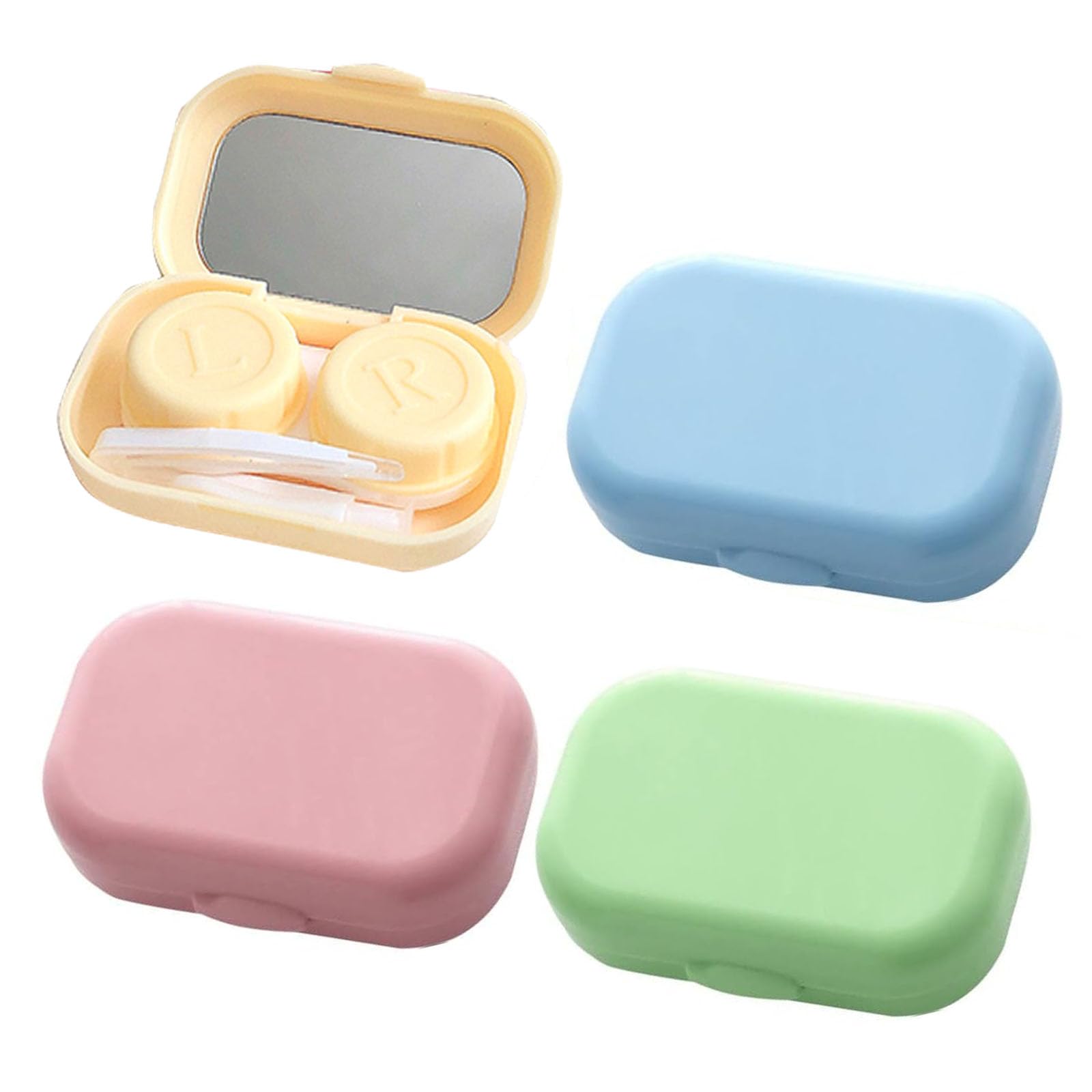 High quality material: The contact lens container is made of environmentally friendly plastic, it is non -toxic and durable, safe for everyday use.delivery: You will receive 4 packs of contact lens containers in four different colors, including mirrors and tweezers.Sufficient amount to cover your daily needs.Width application: Our contact lenses are suitable for many occasions, such as travel, business trips, office, camping, etc., and an ideal gift for friends.Special design: The travel contact lenses are equipped with a screw cap, which can prevent liquid from leaking.The container is characterized by the letters ""L"" or ""R"" to help you identify the right and left sides.Advantages: Our contact lenses are light and small, easy to wear and take up little space.With the container, germs and bacteria can be kept away.High quality material: The contact lens container is made of environmentally friendly plastic, it is non -toxic and durable, safe for everyday use. Hochwertiges Material: Der Kontaktlinsenbehälter ist aus umweltfreundlichem Kunststoff gefertigt, er ist ungiftig und langlebig, sicher für den täglichen Gebrauch.Lieferumfang: Sie erhalten 4 Packungen Kontaktlinsenbehälter in vier verschiedenen Farben, inklusive Spiegel und Pinzette. Ausreichende Menge, um Ihren täglichen Bedarf zu decken. Breite Anwendung: Unsere Kontaktlinsen sind für viele Gelegenheiten geeignet, wie z.B. Reisen, Geschäftsreisen, Büro, Camping usw., und ein ideales Geschenk für Freunde. Besonderes Design: Die Reisekontaktlinsen sind mit einem Schraubverschluss ausgestattet, der ein Auslaufen von Flüssigkeit verhindern kann. Der Behälter ist mit den Buchstaben ""L"" oder ""R"" gekennzeichnet, um Ihnen bei der Identifizierung der rechten und linken Seiten zu helfen. Vorteile: Unsere Kontaktlinsen sind leicht und klein, einfach zu tragen und nehmen wenig Platz ein. Mit dem Behälter können Keime und Bakterien ferngehalten werden. Hochwertiges Material: Der Kontaktlinsenbehälter ist aus umweltfreundlichem Kunststoff gefertigt, er ist ungiftig und langlebig, sicher für den täglichen Gebrauch.Jiazhishun 4 Stück Kontaktlinsen-Trageetui Kunststoff Kontaktlinsenbehälter Bunte Reisekontaktlinsen mit Spiegel Pinzette Kontaktlinsen-Aufbewahrungsbehälter für Zuhause und unterwegs