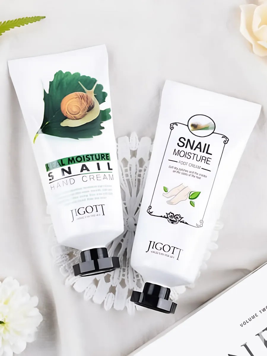 Jigott Набор кремов для рук и ног с экстрактом слизи улитки / Real Moisture Snail Hand & Foot Set, 100 мл x 2 шт.