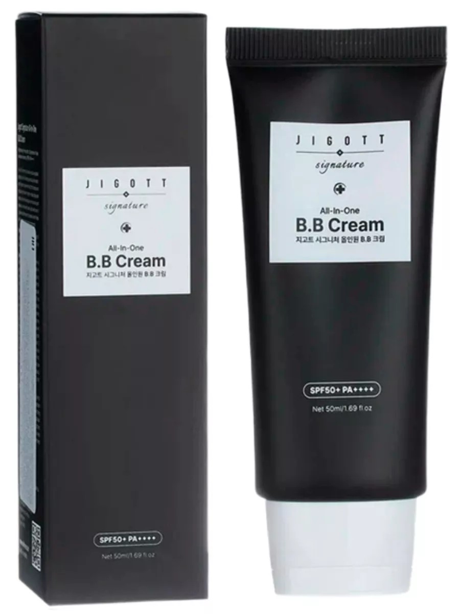 Jigott Signature All-In-One BB Cream SPF50+ PA++++, 50 ml. This product has firming and sunscreen properties. This BB cream contains botanical ingredients such as cypress leaf extract and oregano leaf extract, which soothe and moisturize the skin, helping it look radiant and healthy. It also contains adenosine and niacinamide, which brighten and smooth wrinkles. This BB cream spreads evenly over the skin, imparting a natural color. Directions: After all skincare steps, apply the BB cream to your face and blend with your fingers, a brush, or a sponge.