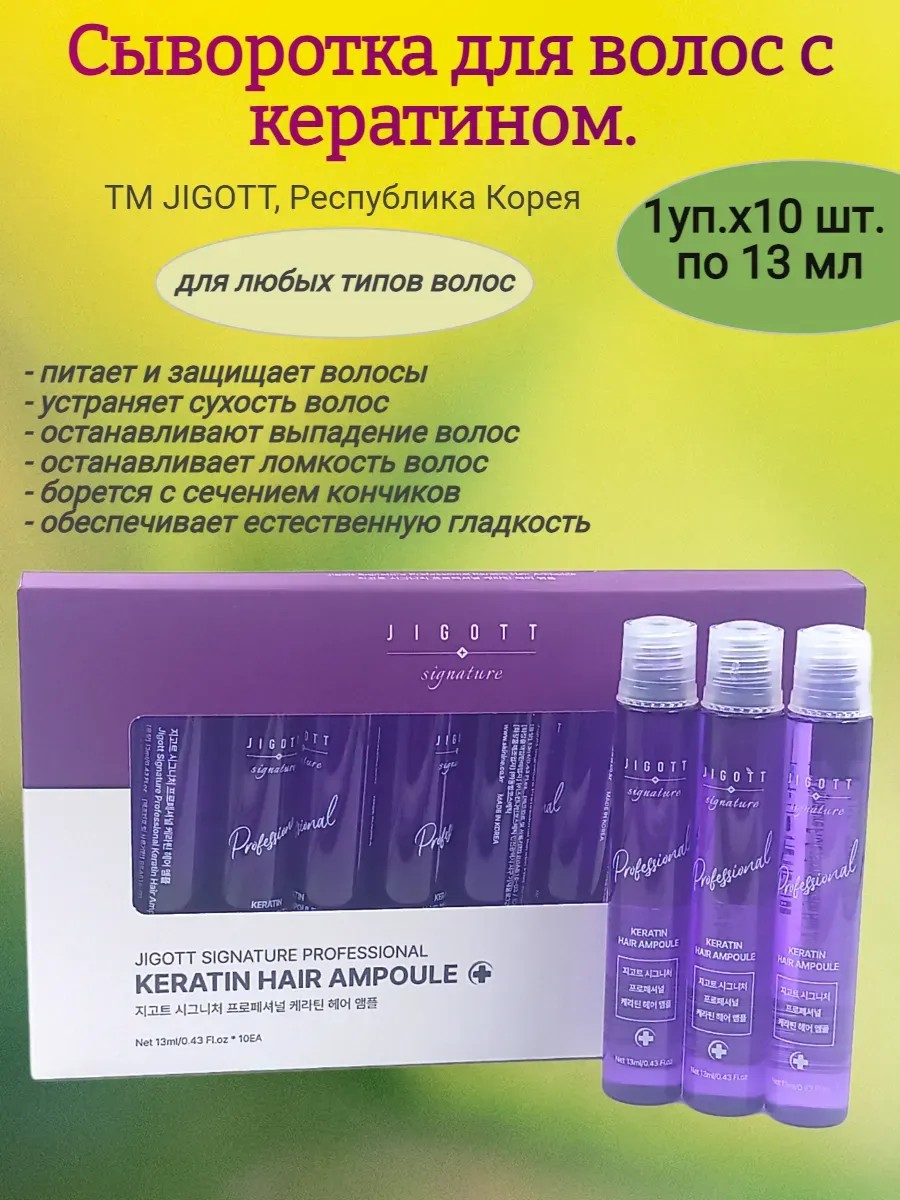 Jigott Сыворотка для волос с кератином, 10шт по 13 мл.