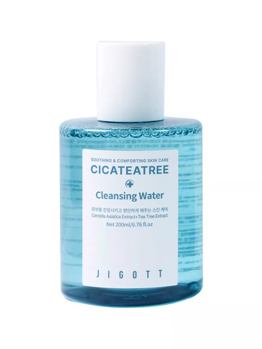 Очищающая вода с экстрактом центеллы и чайного дерева Jigott Cicateatree Cleansing Water бережно убирает макияж, солнцезащитные средства и кожный себум с кожи. Очищает кожу от пыли и прочих загрязнений. Освежает и увлажняет, успокаивает реактивную кожу. Очищающая вода с экстрактом центеллы и чайного дерева Jigott Cicateatree Cleansing Water успокаивает раздраженную кожу, снимает красноту, убирает зуд и неприятные ощущения на воспаленных участках. Она бережно очищает кожу от макияжа, кожного себума и остатков солнцезащитных средств. Ведущая роль в продукте отведена экстрактам центеллы азиатской и чайного дерева. Экстракт центеллы азиатской запускает процессы регенерации, помогает коже восстановиться, заживляет ранки, борется с постакне и рубцами. Экстракт чайного дерева подавляет патогенную флору на поверхности кожи, борется с излишней жирностью, оказывает мощное противовоспалительное действие, успокаивает кожу. Очищающая вода снимает макияж и прочие загрязнения, снижает выработку кожного себума, очищает и сужают поры, оказывает выраженное противовоспалительное и бактерицидное действие. Экстракт центеллы азиатской. Заживляет ранки на коже, восстанавливает липидный барьер. Увлажняет и успокаивает кожу. Укрепляет сосуды. Экстракт чайного дерева. Обладает противовоспалительным и антисептическим эффектом. Устраняет акне, улучшает общее состояние кожи и ускоряет регенерацию поврежденных участков. Тщательно встряхните перед использованием. Намочите ватный диск и мягким движением протрите, снимая макияж. Для снятия стойкого макияжа приложите смоченный ватный диск к коже глаз и губ на 5 секунд, затем протрите кожу. Далее перейти ко второму этапу очищения.