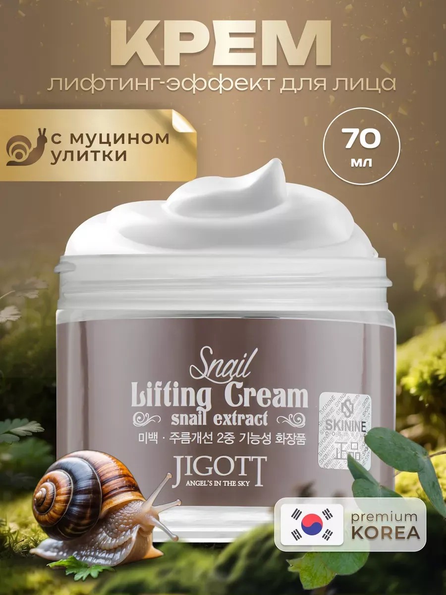 Антивозрастной крем для лица JIGOTT Snail Lifting Cream с муцином улитки.