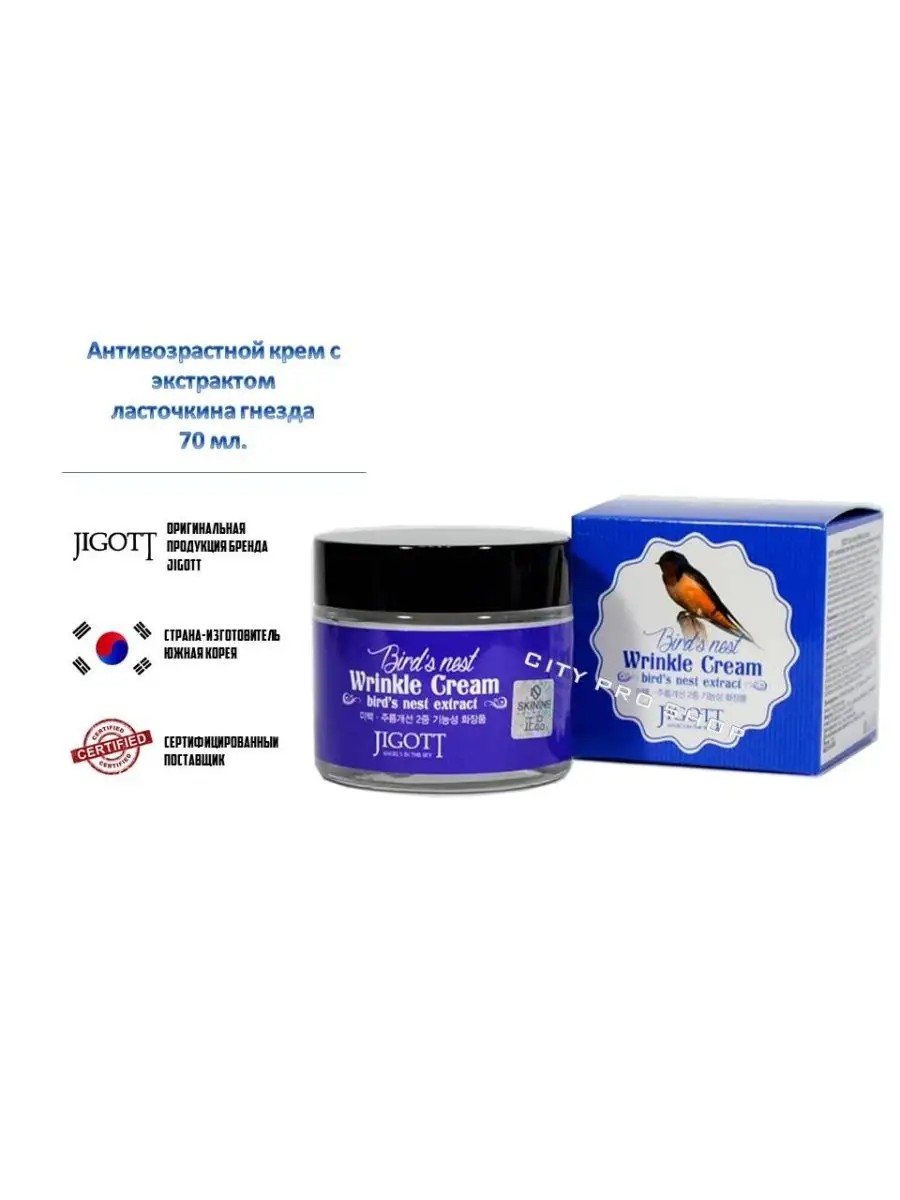 | Комплектация | Антивозрастной крем с экстрактом ласточкина гнезда Jigott Bird's Nest Firming Cream 70 мл. |