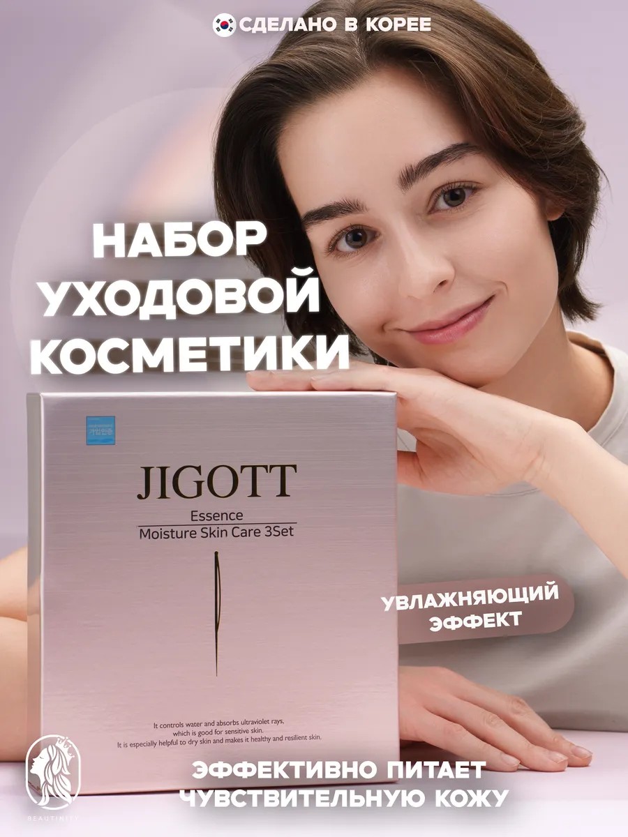 The Essence Moisture Skin Care 3 facial set from the South Korean cosmetics brand Jigott is designed for intensive care of all skin types, especially aging and aging skin.