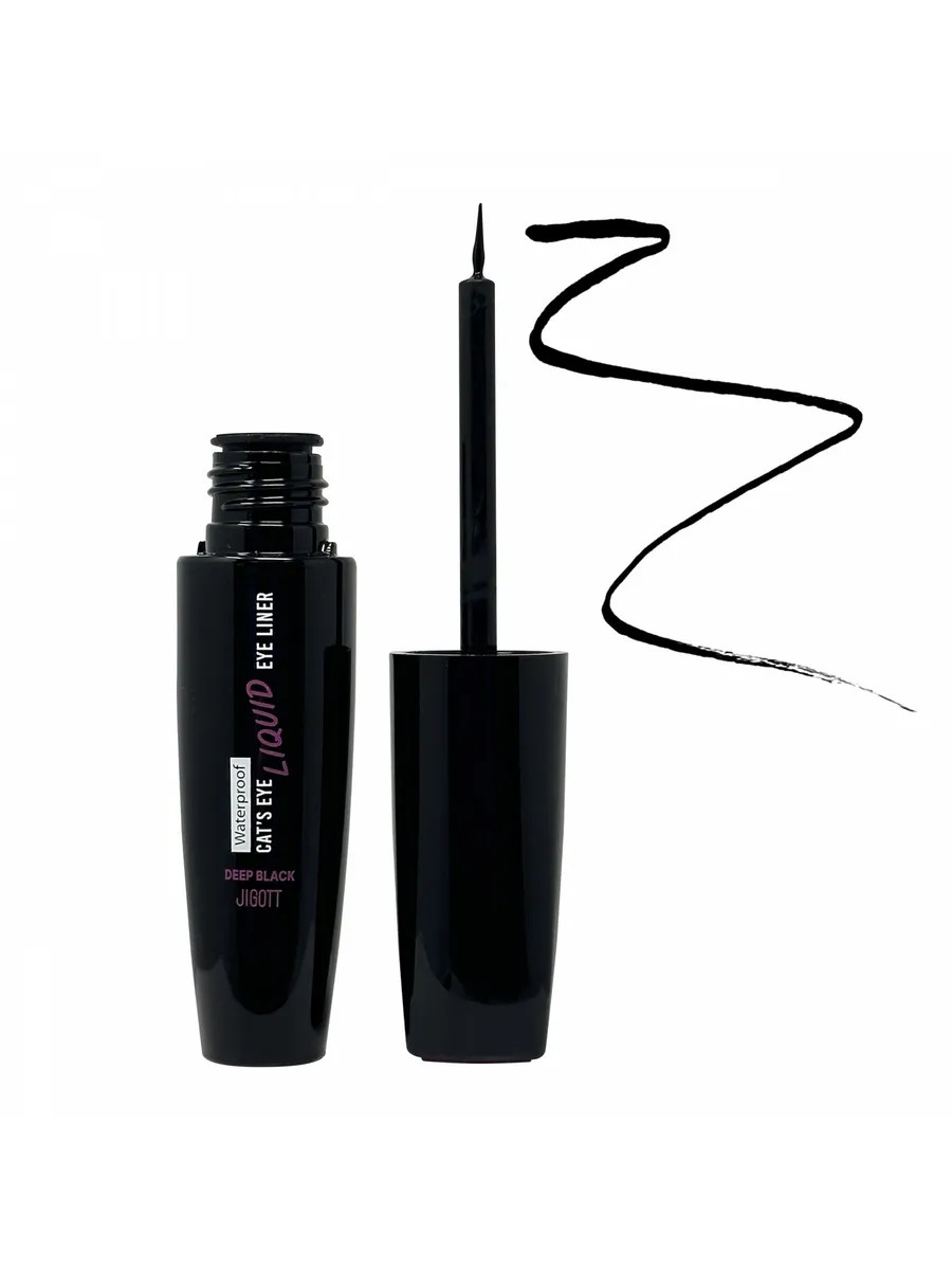 Jigott, Jigott Cat's Eye Waterproof Liquid Eyeliner (Deep Black), 9 g. To highlight the natural brightness of your gaze and the beauty of your eyes, the Jigott cosmetic brand recommends Cat's Eye Waterproof Liquid Eyeliner. This water-resistant formula, high in finely dispersed mineral pigment, and convenient applicator make this eyeliner ideal for drawing precise, smooth lines. Instantly set, it doesn't smudge or feather, and stays put even in high humidity and around the eyes. Your makeup stays flawless even during the busiest of days. It's easy to remove, and can be washed off with warm water without excessive rubbing or irritation.