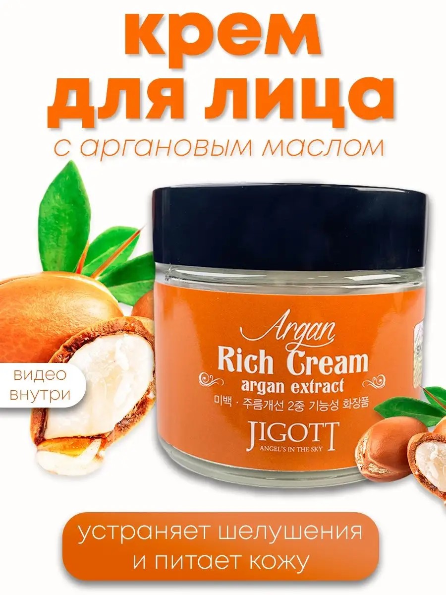 Питательный крем для лица с аргановым маслом JIGOTT Argan Oil Rich Cream смягчает и увлажняет, разглаживает рельеф, делает кожу упругой и наполненной. Предотвращает преждевременное старение, омолаживающий эффект. Обладательницы сухой кожи заметят, как проходят шелушения, пропадает чувство стянутости. Увлажняющий крем обладает выраженными заживляющими свойствами. Рекомендован для лечения солнечных ожогов.