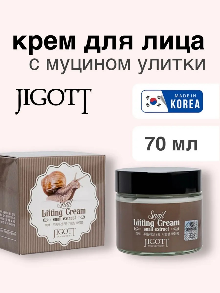 Крем с экстрактом слизи улитки Snail Lifting Cream Jigott Джигот Джиготт замедляет старение кожи, благодаря наличию антиоксидантов, уменьшает глубину мимических морщин, выравнивает рельеф кожи, восстанавливает эластичность и упругость кожи.
