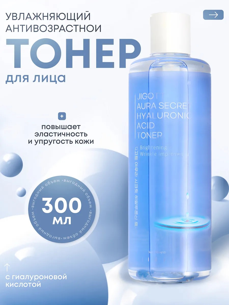 Увлажняющий тонер для лица с гиалуроновой кислотой Jigott Aura Secret Hyaluronic Acid Toner - глубокопроникающий Корейский продукт для эффективного увлажнения кожи, поддержания ее упругости, эластичности и сохранения молодости.