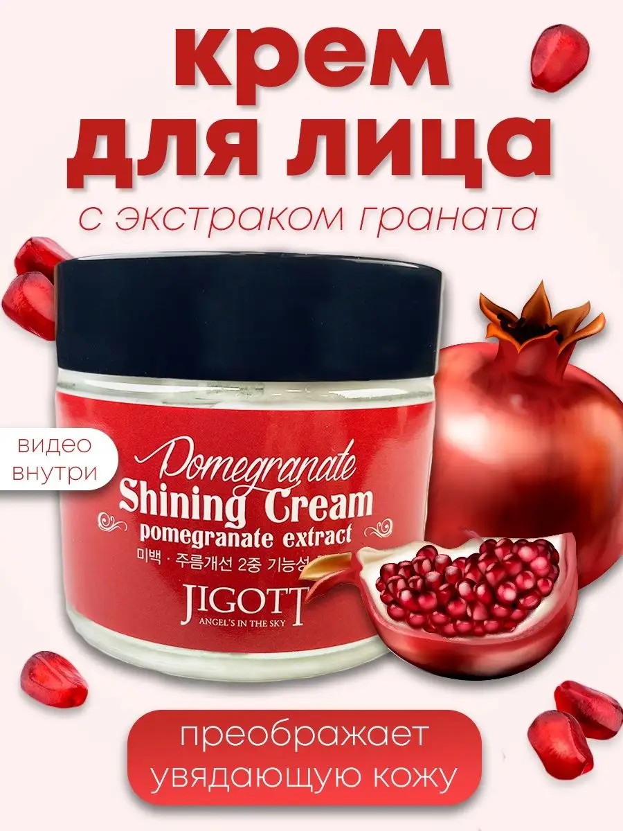 Питательный антивозрастной крем для лица Jigott с гранатом Pomegranate Shining - это настоящая витаминовая бомба.Эта профессиональная корейская косметика с экстрактом граната, витаминами и коллагеном, изготовленная в Korea, предназначена для увлажнения, питания и омолаживания кожи, помогает справиться с различными проблемами, такими как прыщи, черные точки, морщины, пигментация и акне. Это универсальное средство, которое можно использовать в качестве ночного и дневного крема для лица, шеи и зоны декольте.