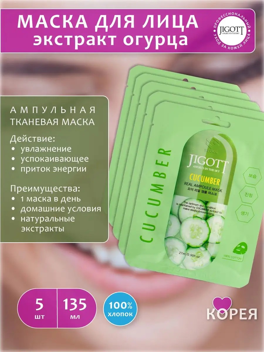 Jigott Маска для лица тканевая и экстракт огурца 135 мл