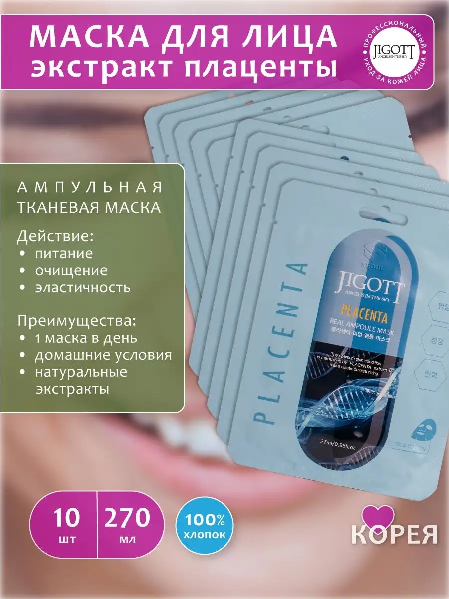Jigott Маска для лица тканевая и экстракт плаценты 270 мл