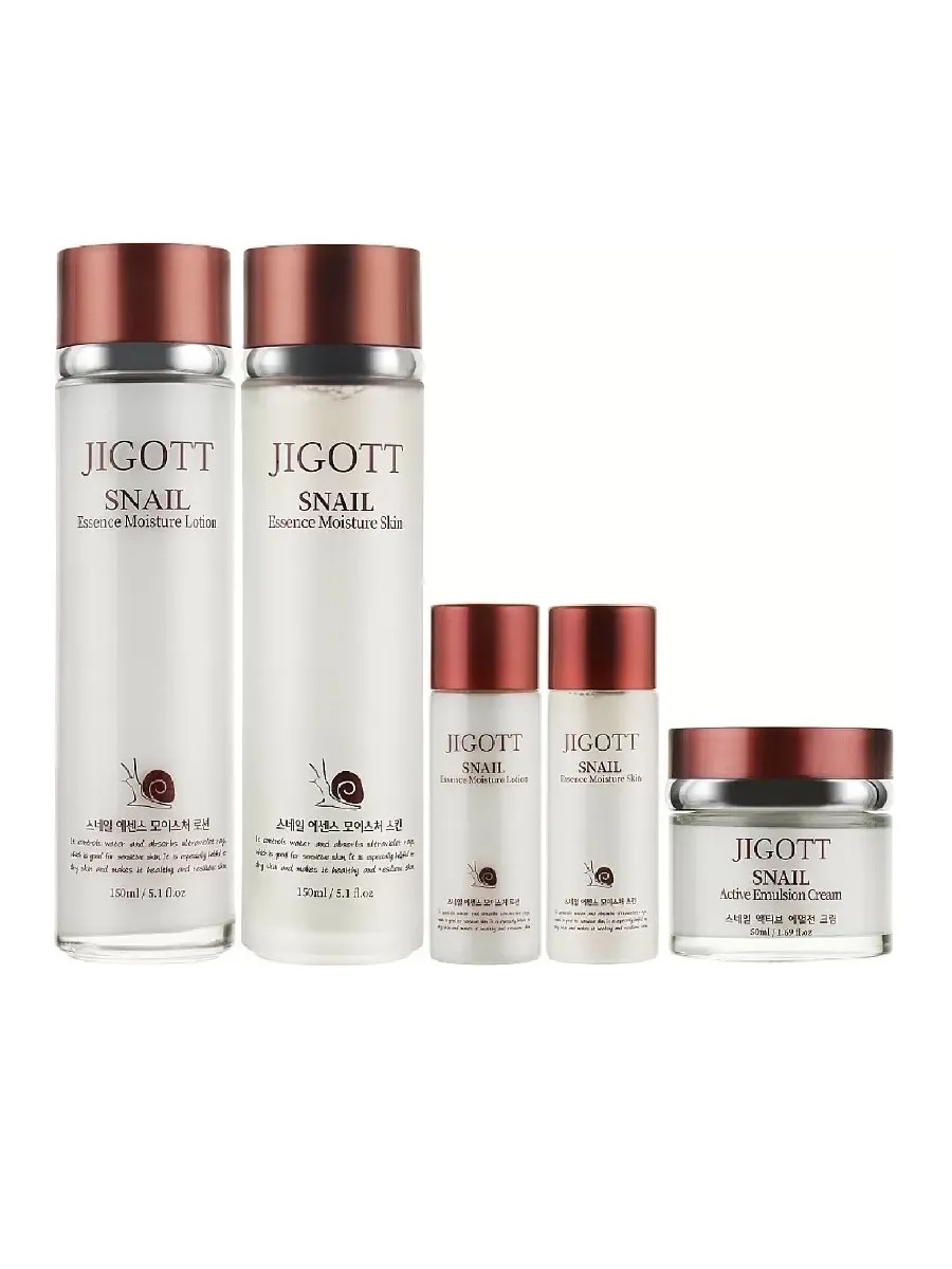 | Комплектация | Набор для лица с муцином улитки Snail Moisture Skin Care Jigott, 5 предметов |