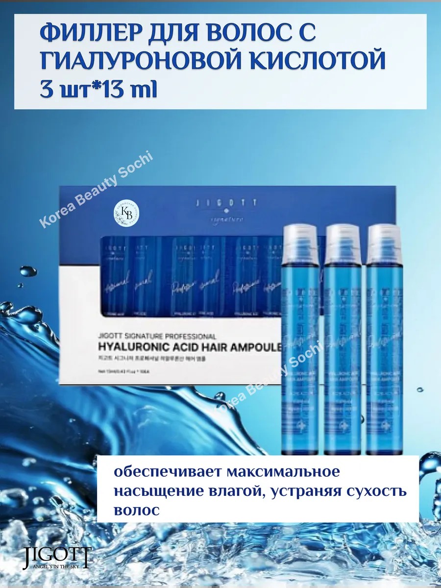 3 шт*13 ml Jigott Signature Professional Hyaluronic Acid Hair Ampoule это лёгкий активный флюид, который воздействует на структуру волоса и делает волосы живыми, мягкими, блестящими и упругими. Гиалуроновая кислота в составе сыворотки даёт волосам глубокое питание и увлажнение, позволяя сохранять живительную влагу внутри волоса.