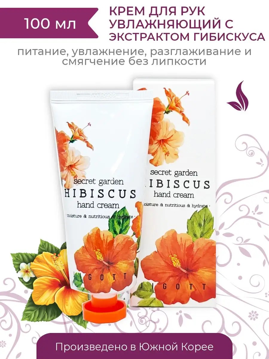 Крем для рук с экстрактом гибискуса Jigott Secret Garden Hibiscus Hand Cream бережно заботится о коже рук, надолго сохраняя молодость и красоту. Компоненты состава средства покрывают кожу рук неощутимой оболочкой, которая препятствует испарению влаги, защищает от ветра, солнца, мороза. Они снимают воспаления, обладают омолаживающими свойствами. Экстракт гибискуса включает в себя высокое содержание витамина С и бета-каротин, поэтому прекрасно разглаживает и смягчает кожу. Также средство включает в себя ниацинамид и аденозин, которые разглаживают морщины, повышают эластичность кожи. Способ применения: Возьмите небольшое количество средства (размером с горошину) и нанесите его на предварительно очищенную кожу рук. Вотрите легкими аккуратными движениями.