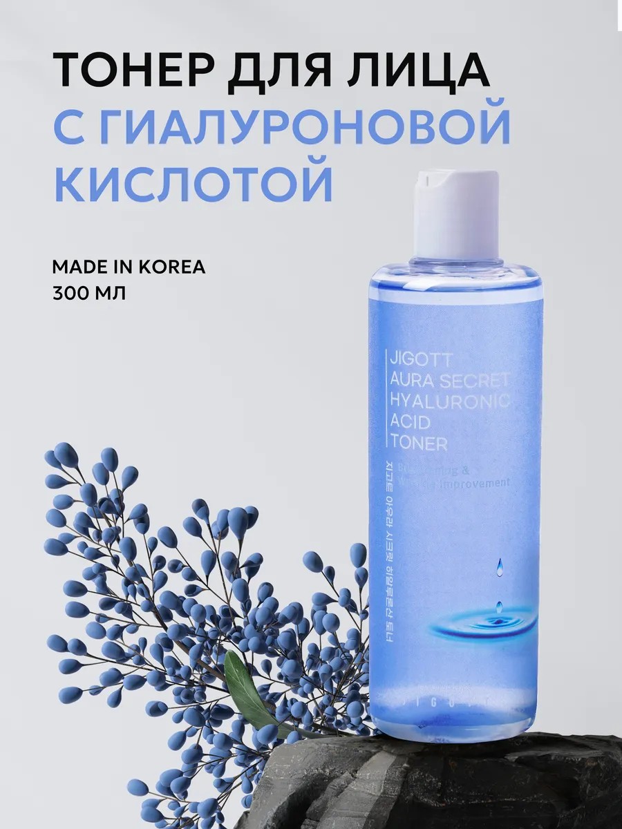Jigott Aura Secret Hyaluronic Acid Toner (300 ml) is a Korean moisturizing toner with hyaluronic acid, designed specifically to hydrate and nourish the skin.