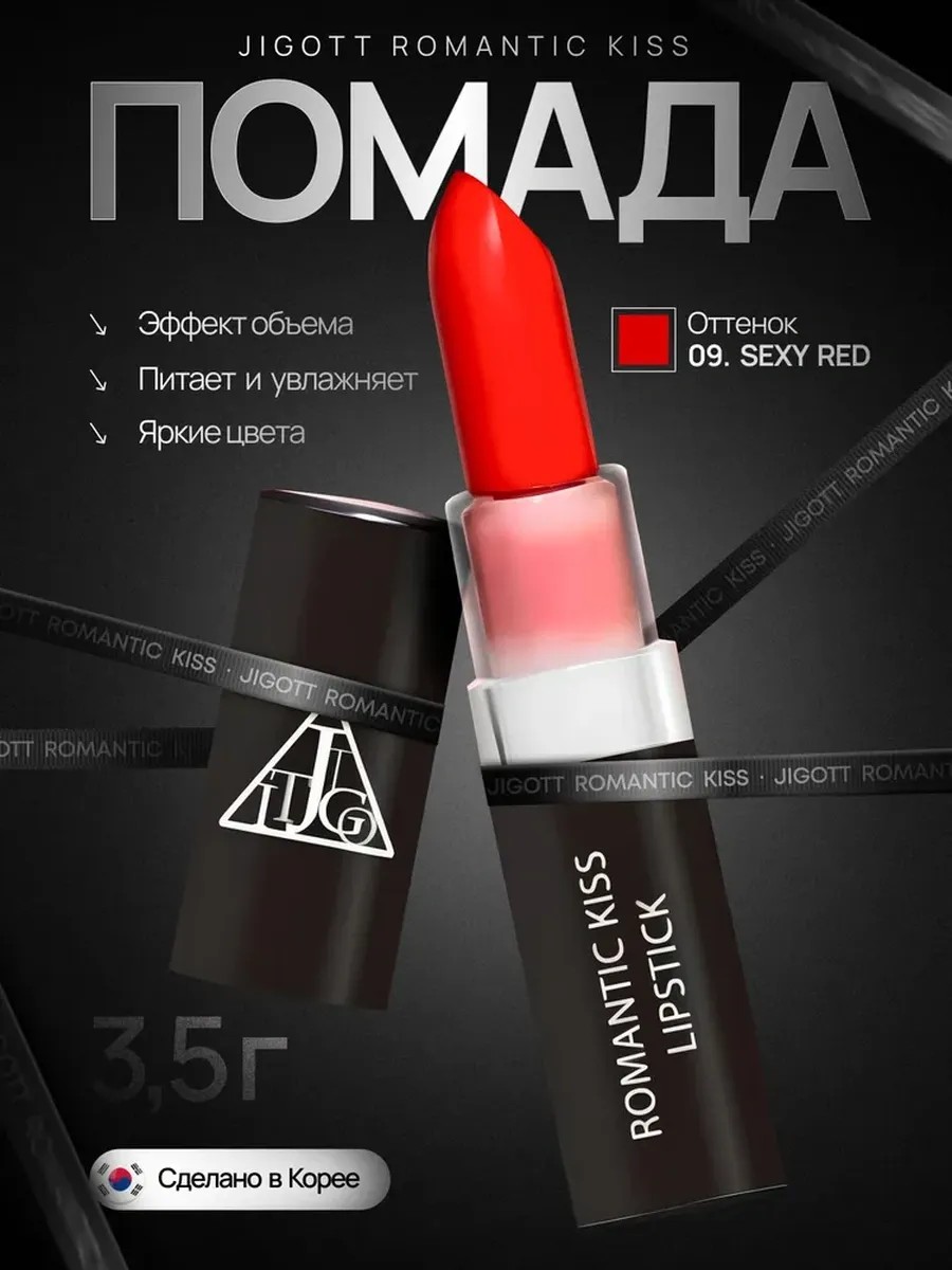 Помада для губ Jigott Romantic Kiss Lipstick в оттенке Sexy Red — это идеальное сочетание насыщенного цвета, увлажнения и ухода за губами.