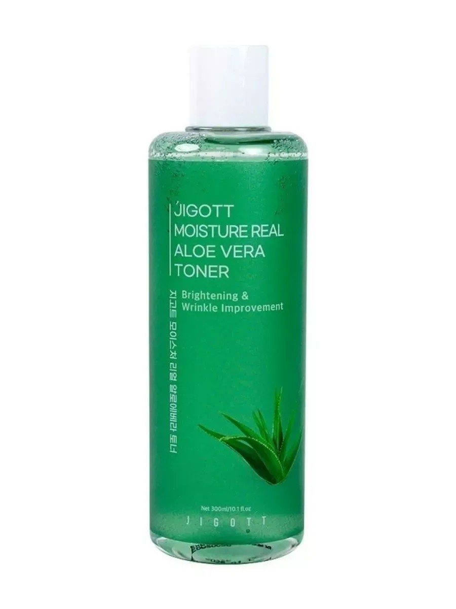 "Тонер для лица JIGOTT с экстрактом алоэ предназначен для ежедневного ухода за лицом. Он многофункциональный, подойдет для любой кожи, но более эффективно работает с сухой, обезвоженной, увядающей и проблемной. Тонер питает, защищает, устраняет ряд дерматологических проблем.