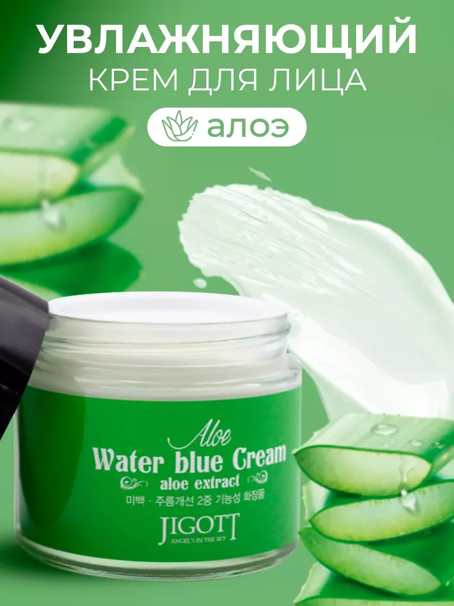 Крем для лица с алое Jigott Aloe Water Blue Cream имеет приятную, легкую текстуру, дает ощущение упругости и гладкости кожи.