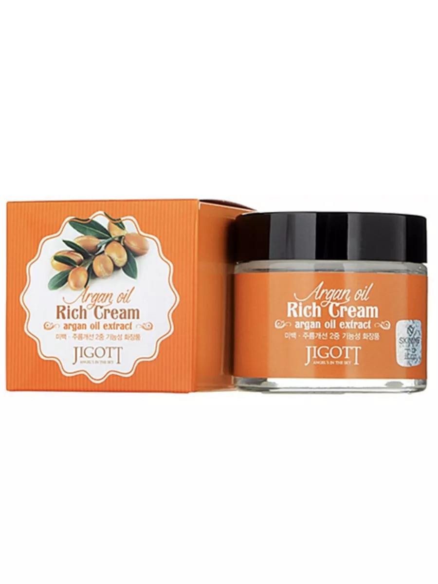 Jigott Argan Oil Rich Cream — это питательный крем для лица с маслом аргании. Он увлажняет и разглаживает кожу, устраняет шелушение, снимает усталость и стресс, уменьшает морщины и другие признаки старения