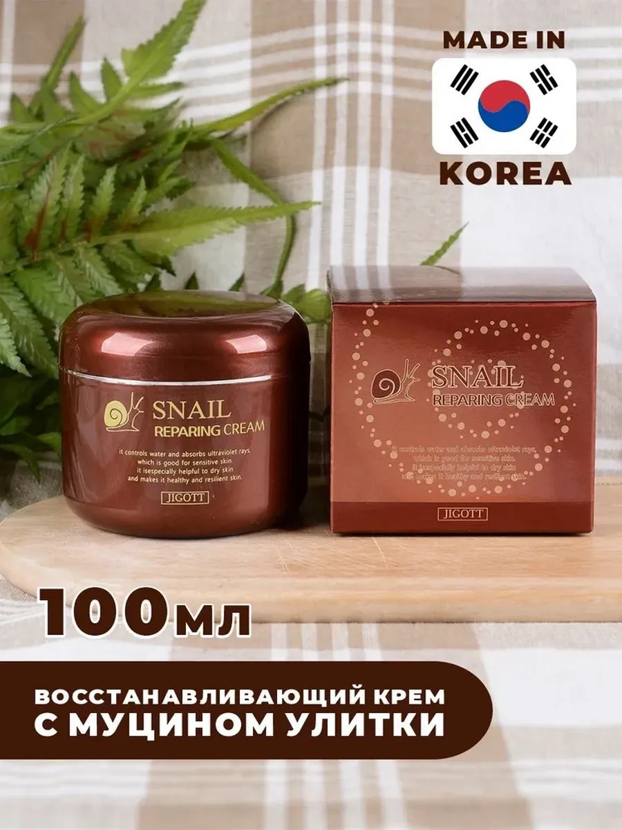 JIGOTT Snail Repairing Cream is a universal cream for those who want to restore, soften, and moisturize the skin, while improving its texture and tone.