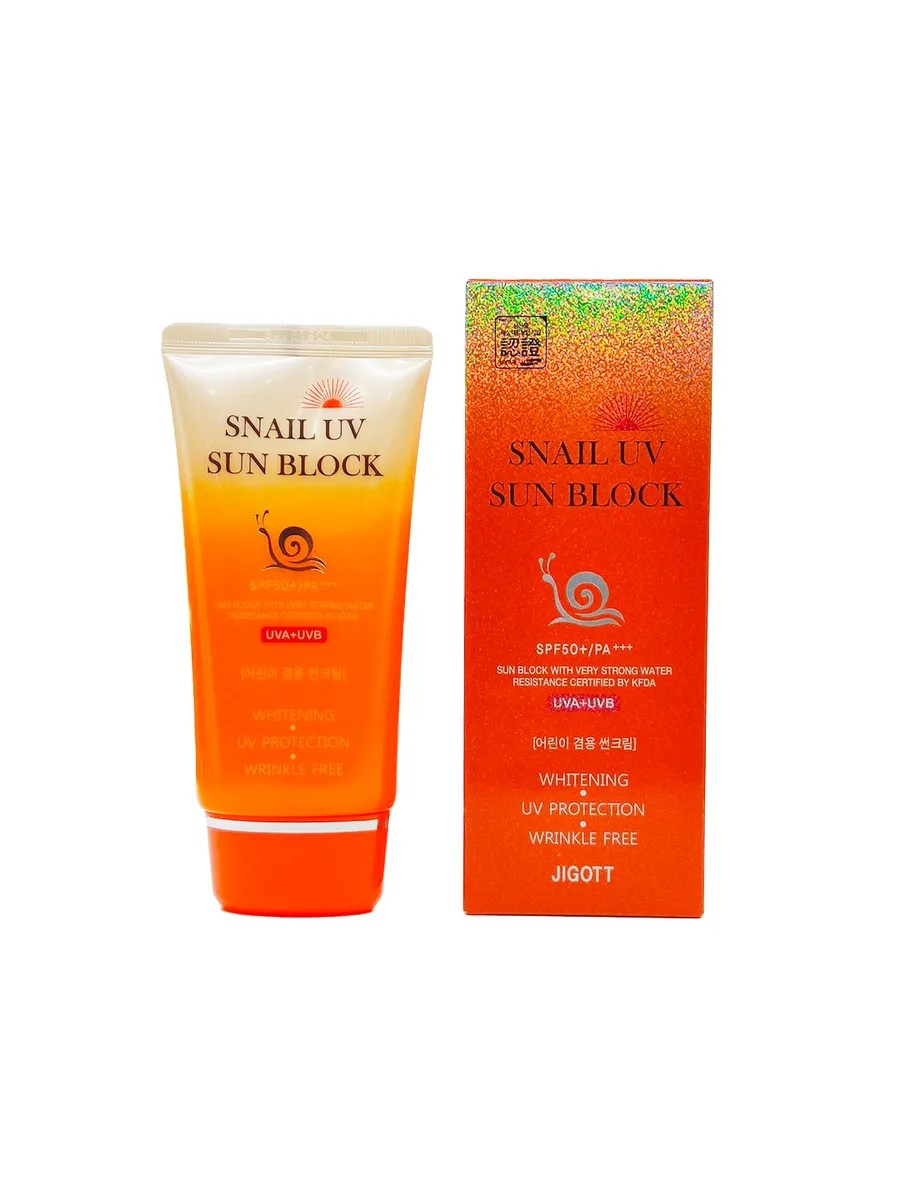 Jigott Snail UV Sun Block Cream SPF50+ is an innovative moisturizer with a light, delicate texture that combines high UV protection with powerful anti-aging properties.