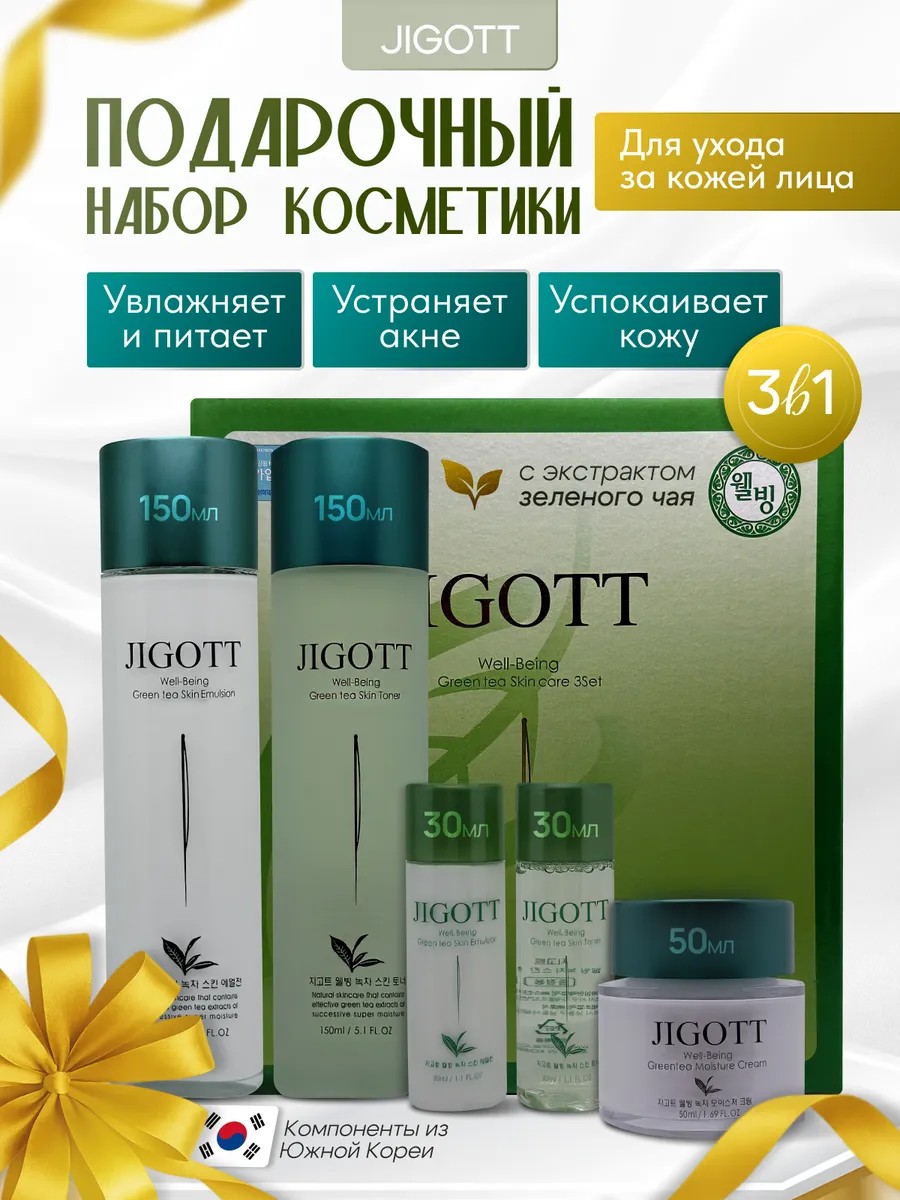 Подарите своей коже интенсивный уход с набором для лица Well-Being Greentea Skin Care 3 от южнокорейского бренда Jigott.