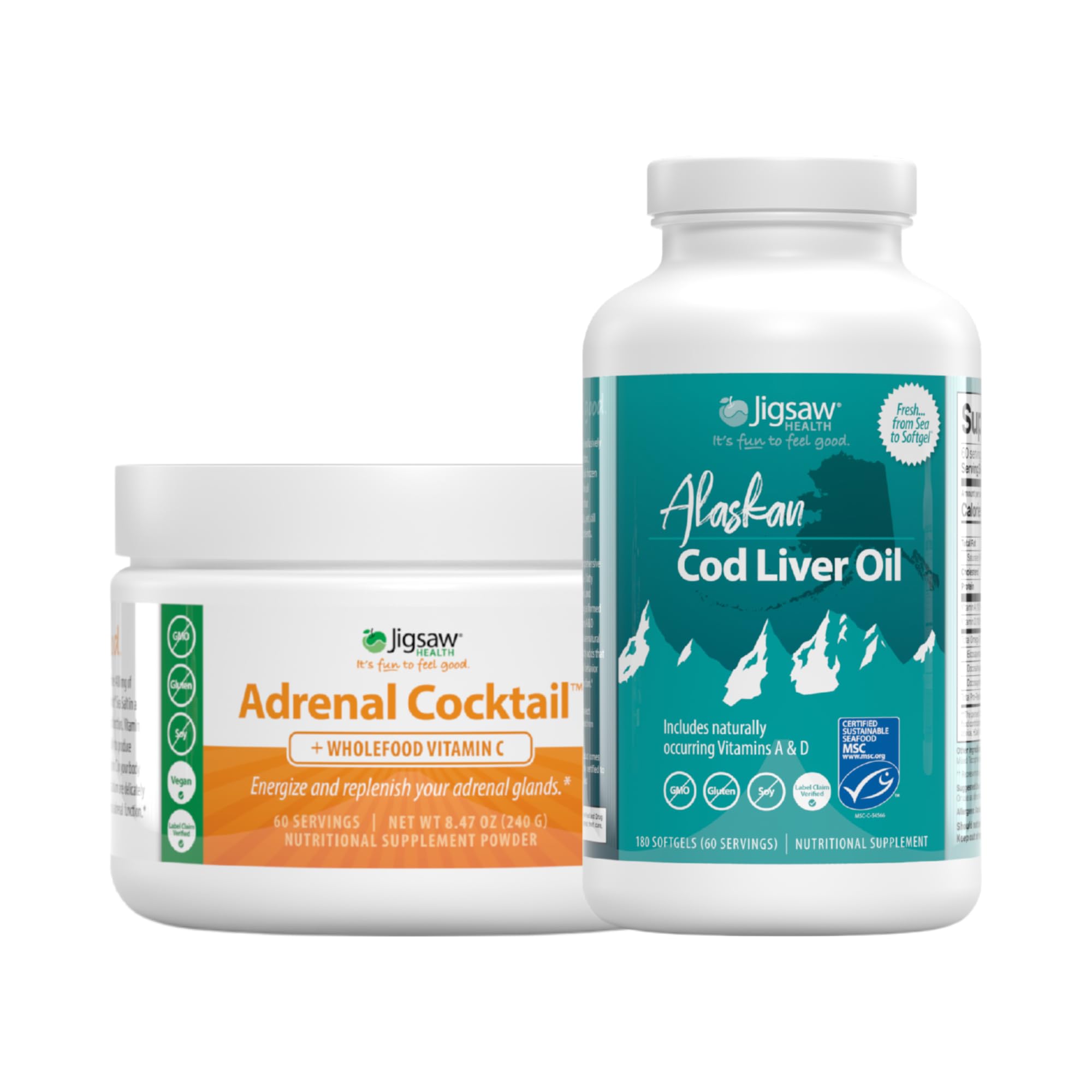 Jigsaw Health Bundle | Adrenal Cocktail 60 Servings (Jar) and Alaskan Cod Liver Oil 180 Softgels
